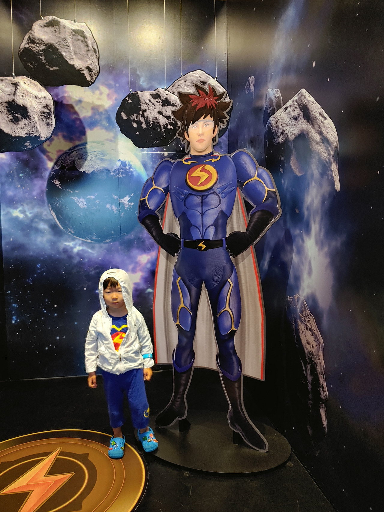 요새 큰아이는 유치하다며 번개맨을 좋아하지 않지만, 한 때 우리는 주말 아침에 번개맨을 함께 보곤 했었다. 번개체조 노래가 울려 퍼지면 가족 모두가 자리에서 일어나 번개체조를 따라 하며 서로의 모습을 보는 것이 좋았다. 사뭇 진지한 표정의 둘째의 모습을 사진이나 동영상으로 찍어놓는 일도 좋았고. 번개체조를 마치고 나면 어김없이 둘째는 번개맨 복장으로 집안을 뛰어다니곤 했었다. 그런 아이들에게 번개맨 우주센터는 꿈의 장소였다. 당시에는.