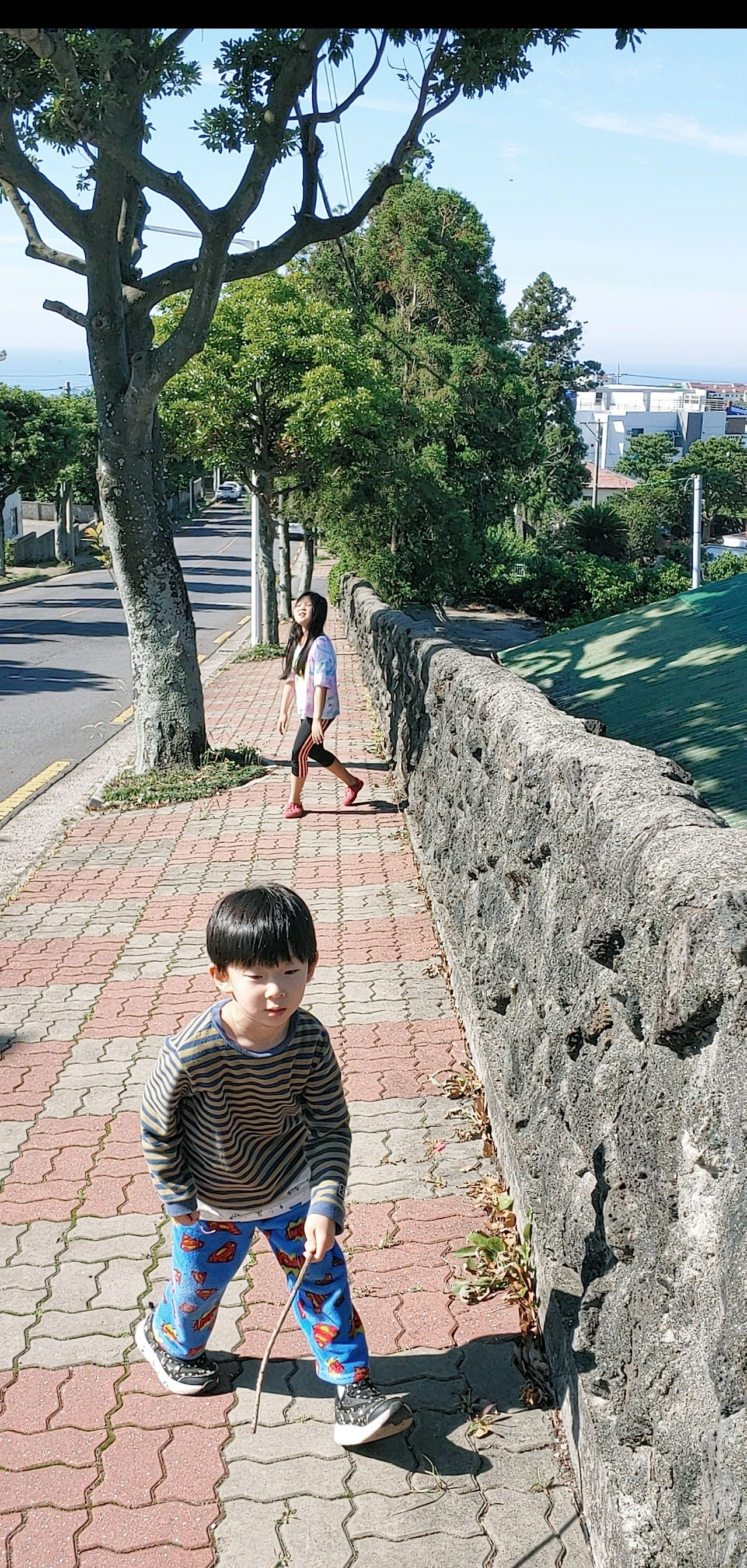 봄에 제주는 아직 습하지 않아서 좋다. 해는 멀리서 길게 내리쬐는데 아침에 창문을 열면 관광지에서의 향기를 그대로 느낄 수 있고, 멀리 바다에 수평선이 선명한 날은 아침 공기를 듬뿍 마시며 하루를 시작하는 것도 좋다. 주말에는 아침을 먹여서 주로 사람이 없는 곳으로 산책을 나가는데, 사람들이 잘 가지 않는 관광지로 나가는 경우도 있고, 사람을 피해 멀리 바다를 산책하는 경우도 있다. 관광객들은 잘 모르는 오름이나 숲으로 소풍 가거나, 그냥 아무 곳도 아닌 돌담 사이 동네 길을 걸으러 가는 경우도 있다. 원래 제주도는 특히 서귀포는 길에 사람이 많지 않기에 올레길이 아니라면 한 시간을 걸어도 동네 분들 몇 밖에 만나지 못한다. 아이들은 마스크를 목에 걸고 다니면서 이따금 마스크를 벗고 숨을 크게 쉬는데, 봄에 꽃냄새며 풀냄새며 감귤꽃 냄새가 품 안으로 가득 들어오면 아이들은 간질간질한 표정으로 키득대곤 한다. 그러면 그 모습이 예쁘기도 하고 마음이 아프기도 해서 한참을 바라보게 된다.