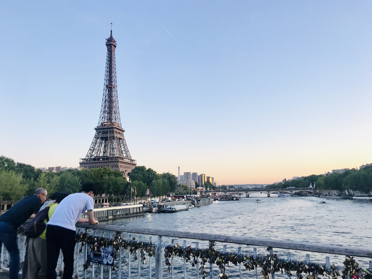 센느 강까지 한참 걸으니 에펠탑이 친숙하게 작아졌다. 하늘로부터 노을을 뺏어서 세상에 자기만 있는 줄 알고 혼자 빛나고 있다. 그래봐야 고철덩어리인데 저런 곡선을 넣을 생각을 하다니. 누군진 모르지만 참 잘했다. 생긴지 200년도 안됐으면서 이젠 너 없는 파리는 상상할 수도 없을 정도니까.