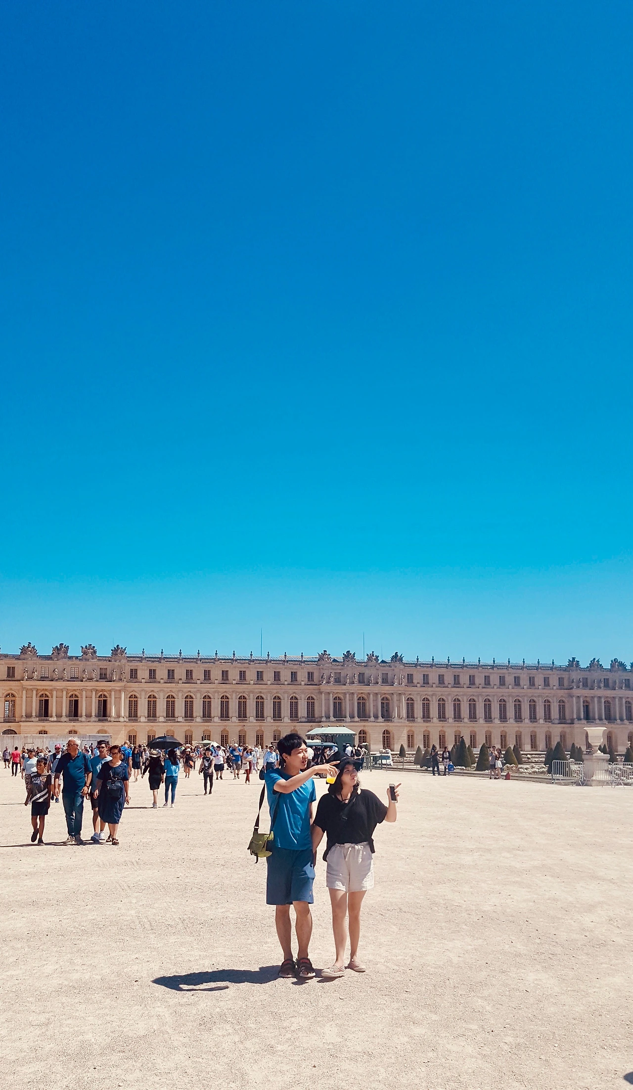 아름답던 파리를 미워하는 마음이 천천히 걷힐 무렵 베르사유 궁전 입구에 도착한다. 그늘 하나 없는 넓은 마당에 사람들이 개미가 되서 열을 맞추고 있다. 안좋은 예감은 항상 정답, 베르사유 궁전에 들어가는 줄이다. 자외선과의 대결에서 승리하고, 2탄 지루함까지 깨부수고 나서야 베르사유 궁전에 입장할 수 있었다.