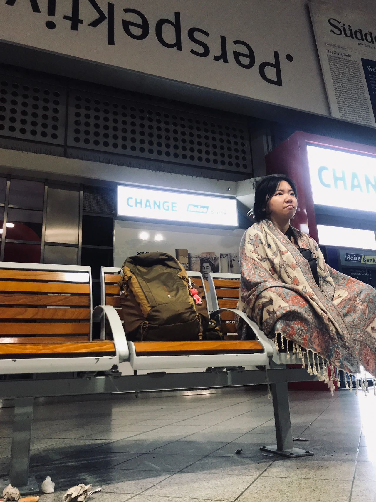 호텔 대신 나를 맞은 건 뮌헨 중앙역의 딱딱한 벤치다. 잠자리 경쟁이 치열하다. 새벽 1시 반, 늦은 차를 타는 사람들과 뮌헨 상주 노숙자들은 이미 취침준비를 마쳤다. 그 사이로 사람 앉을 곳도 없는데 상전처럼 앉아있는 가방에게 눈치를 줘본다. 주인 착한 가방이 일어나 자기 주인 발 밑에 눕는다.
