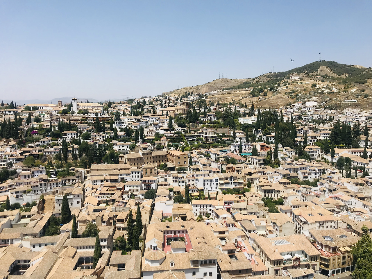 솟아오른 알카사르에 오르니 터미널부터 우리를 환영해준 하얀 색 벽과 연한 황토색 지붕을 가진 집들이 저 아래 쑥 들어가 정수리만 내놓고 있다. 마을을 위에서 내려볼 때면 영화 <남한산성>이 겹쳐진다. 이병헌과 류승룡이 다가오는 추위와 좁혀오는 청나라의 포위 속에서 감히 한숨조차 쉴 수 없는 공기에 둘러쌓여 수많은 백성들을 내려보고만 있다. 그라나다는 900년 전 교황의 명으로 스페인 내 기독교 국가들이 합세해 이슬람국가를 몰아내던 당시 마지막까지 항전했던 무어족 최후의 도시다. 지키는 것은 왜 번성할 때보다 더 어려울까. 내려감을 지켜보는 마음이 힘들어 기적을 만드는 에너지가 모이기 더 어려워지는 것 같다.