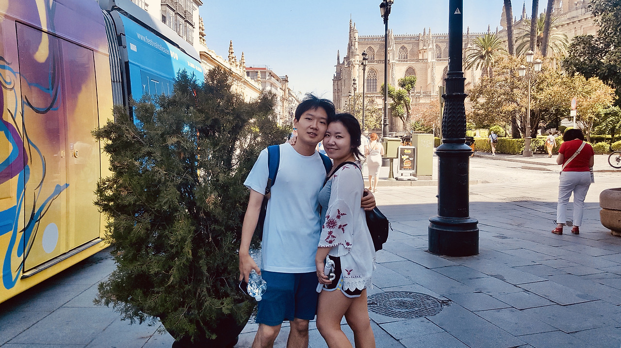 이왕 그라나다까지 내려온 김에 스페인 남부 지역 대표 도시에 가보자는 내 빡빡한 욕심으로 두 분 손목을 잡아끌어 도착한 세비야에서 상대성이론을 무시한 시간여행을 경험한다. 세비야는 한때 스페인의 잘 나가던 효자였다. 아직도 해상무역의 대표 주자였던 그 시절을 잊지 못했는지 화려하게 사는 습관이 여전하다. 유럽 최대 성당과 지금도 왕족이 산다는 알카사르 맞은 편엔 전세계 브랜드는 다 모아둔 산타크루즈 광장이 서 있는데 600년 전의 화려함과 현대의 화려함이 의외로 잘 아울린다.