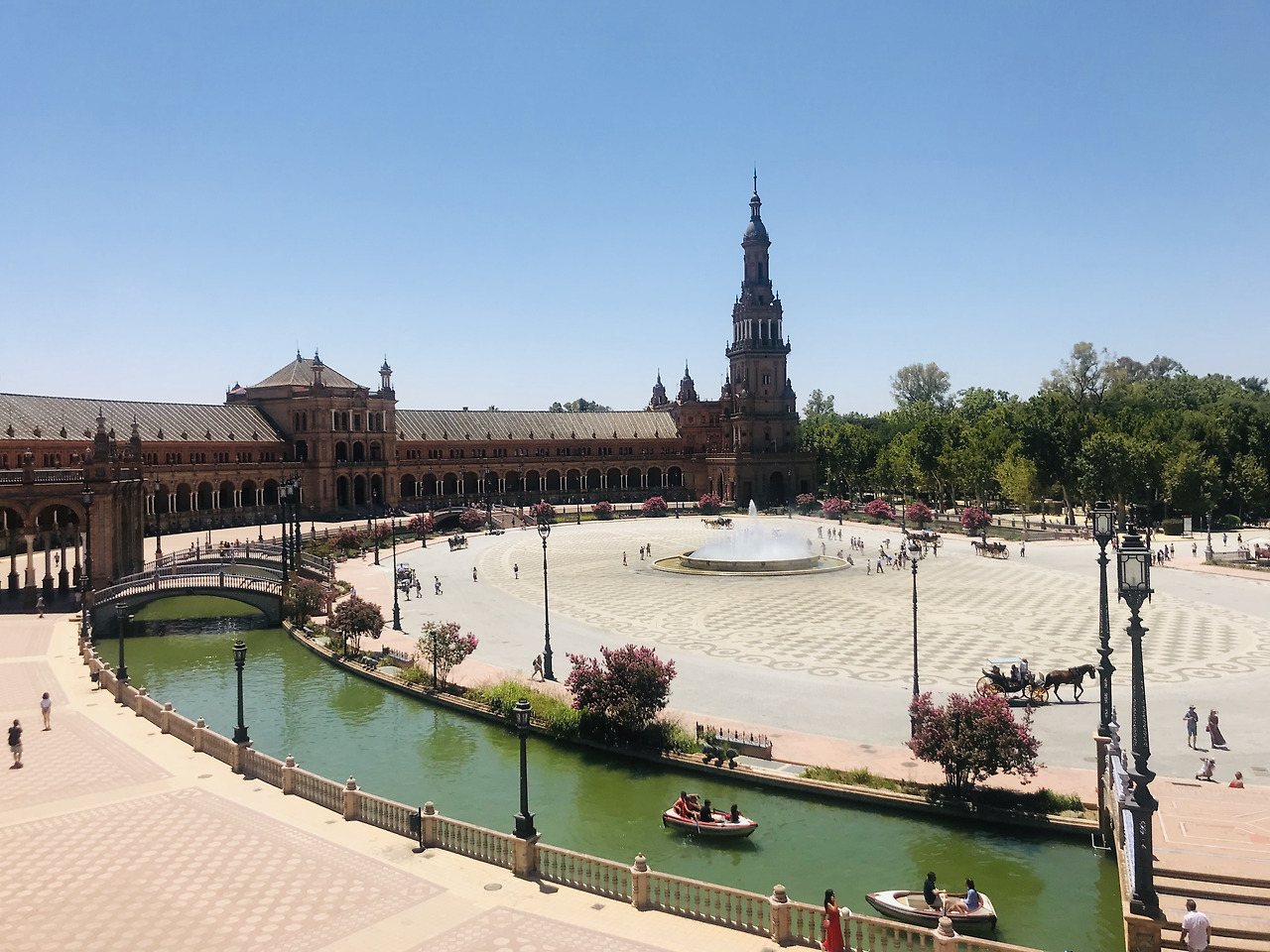 그렇게 먹다 사다 걷고 걸어 태양의 공격을 받은 정수리가 벌개질 즈음 도착한 스페인 광장은 가로 2cm밖에 안되는 내 두 눈엔 도저히 담을 수 없는 크기였다. 둥근 요새로 둘러쌓여서는 배를 타고 놀만큼 큰 물길까지 품은 광장은 2017년 촛불집회 참가자들을 모아놔도 남을 만큼 넉넉했다. 나도 쟤처럼 넓어지고 싶어 기지개를 키고 어깨를 펴본다. 시원한 분수 아래서 사람들이 노래에 맞춰 플라밍고를 추고 있다.