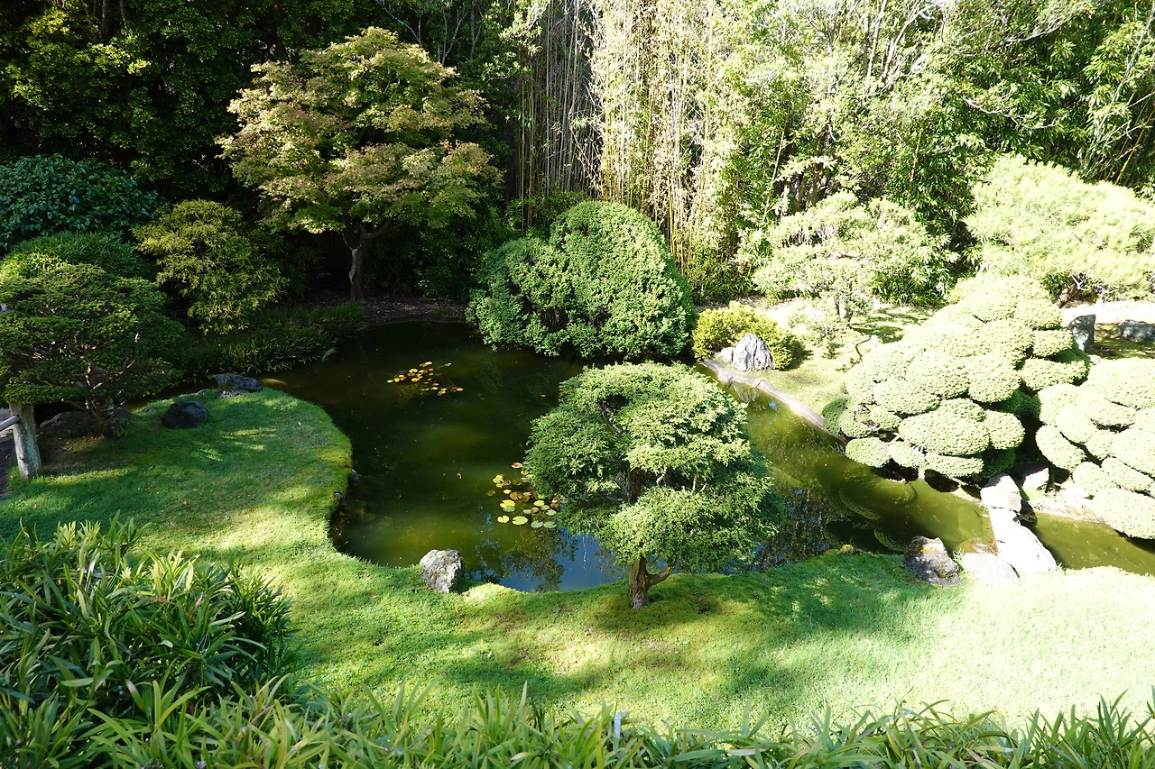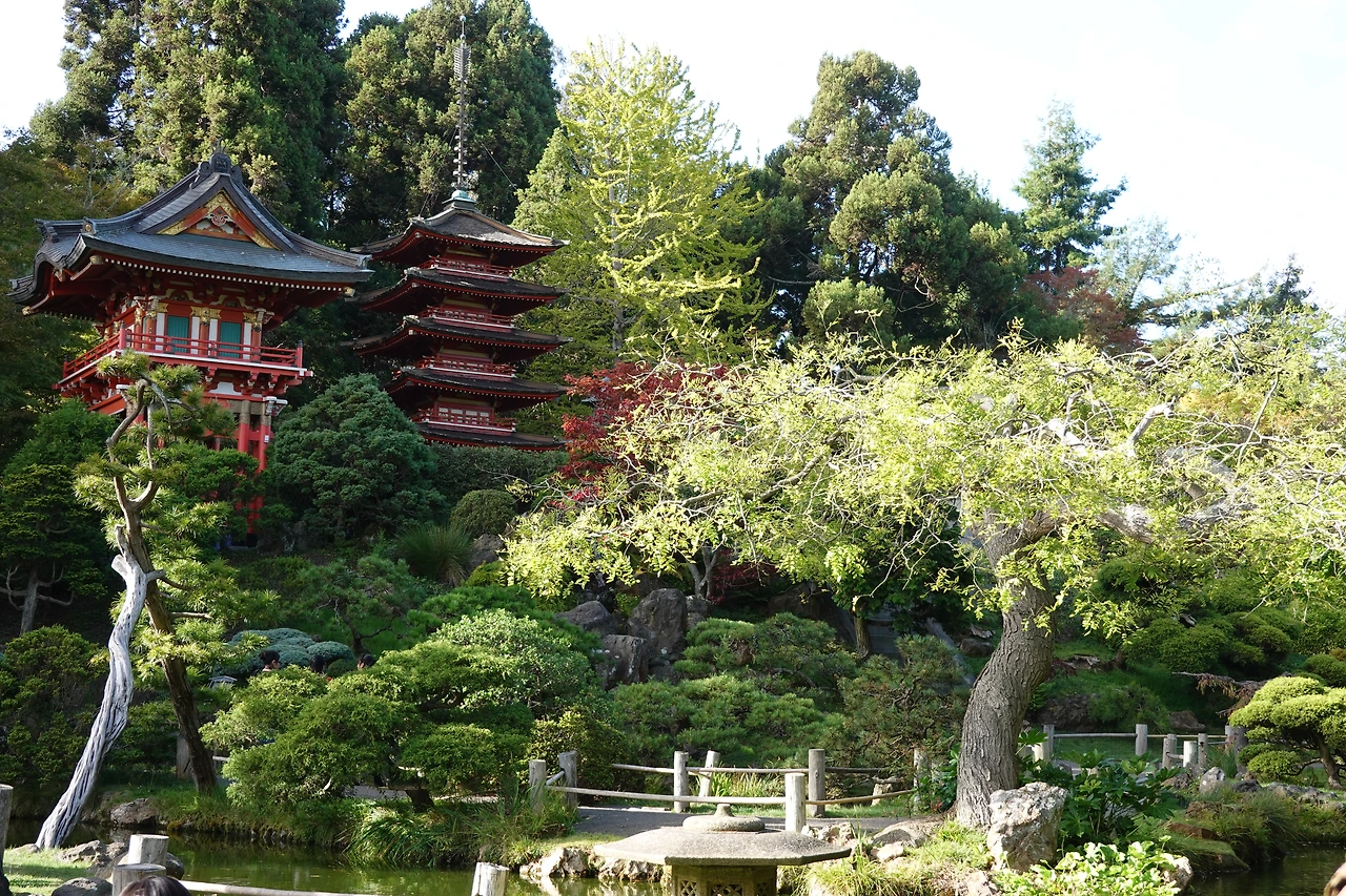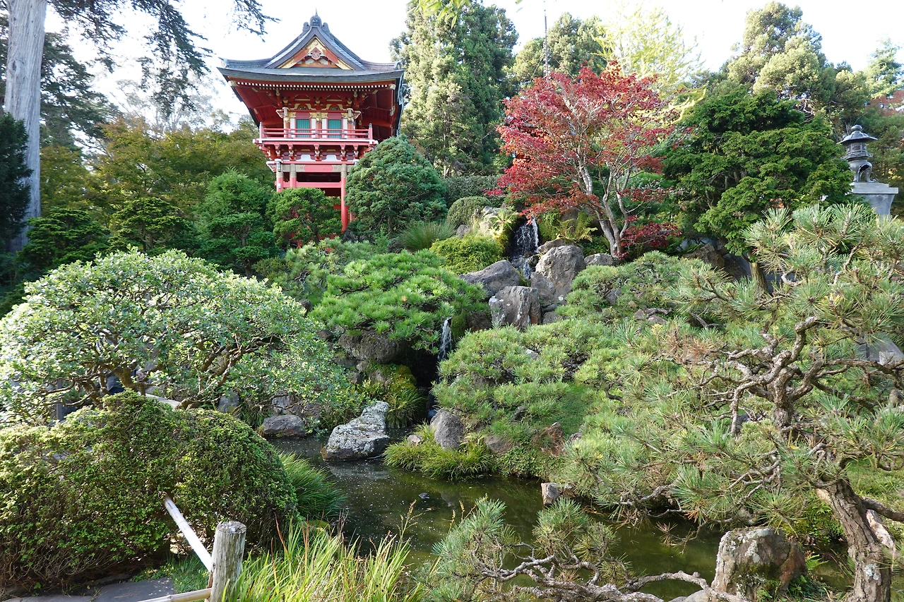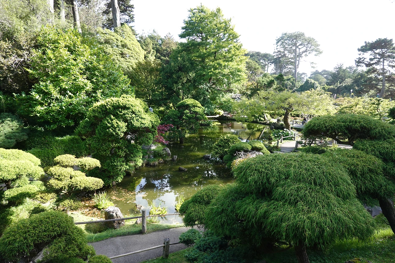 화장실 밖으로 나와서 꽃과 나무와 연못을 보는 순간 우울했던 마음속 안개가 쨍쨍한 햇빛에 증발해버렸다. 내 감정의 롤러코스터와는 반대로 정원의 아름다운 모습은 정적이고 황홀했다. 온화한 아침, 비 온 뒤 화창하게 볕이 드는 차분한 정원을 보는 것 같았다. 물을 가득 머금은 생동한 꽃, 나뭇가지마다 찬란하게 빛나는 색색의 나뭇잎이 달린 나무, 꽃과 나무를 뚫고 연못으로 떨어지는 햇빛까지. 모든 것이 잘 어우러져 정갈한 느낌을 준다. 1895년에 일본인 정원사가 꽃과 나무, 잉어까지도 일본산으로 가지고 와서 만들었다니까 123년이나 된 것들인가.