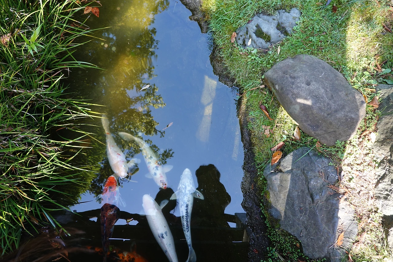 물에 비친 나무가 진짜인지 가짜인지 분간이 안될 정도로 물이 맑고 깨끗했다. 그 안에 내 팔뚝만 한 잉어들이 정원의 분위기만큼이나 슬렁슬렁 유유히 헤엄치고 있었다. 비단잉어들에 정신이 팔려 소진 남매는 한참을 잉어를 봤다.