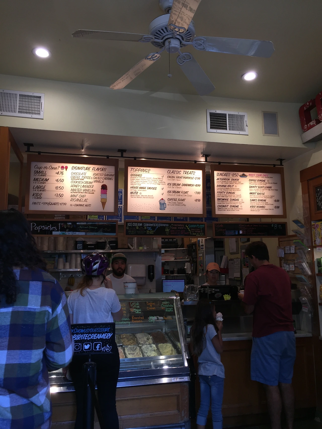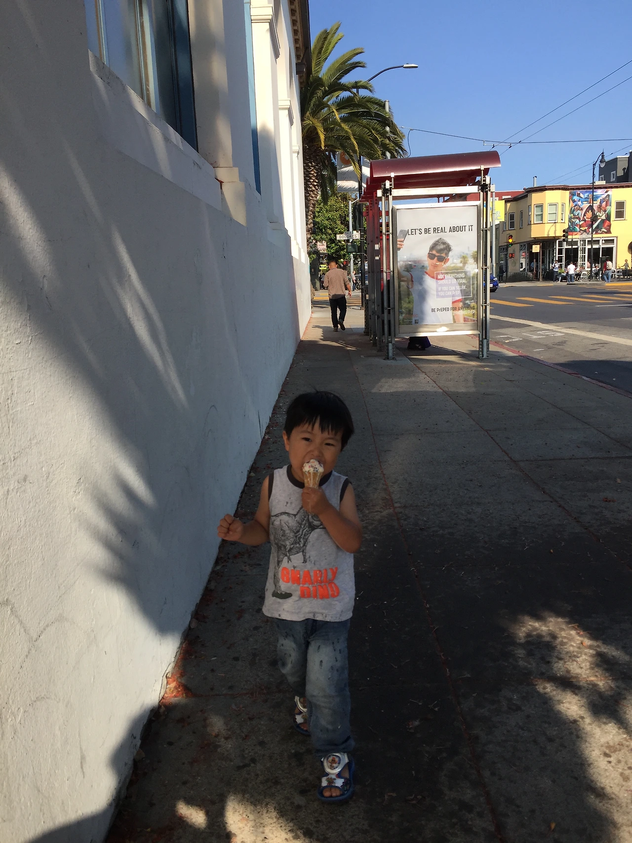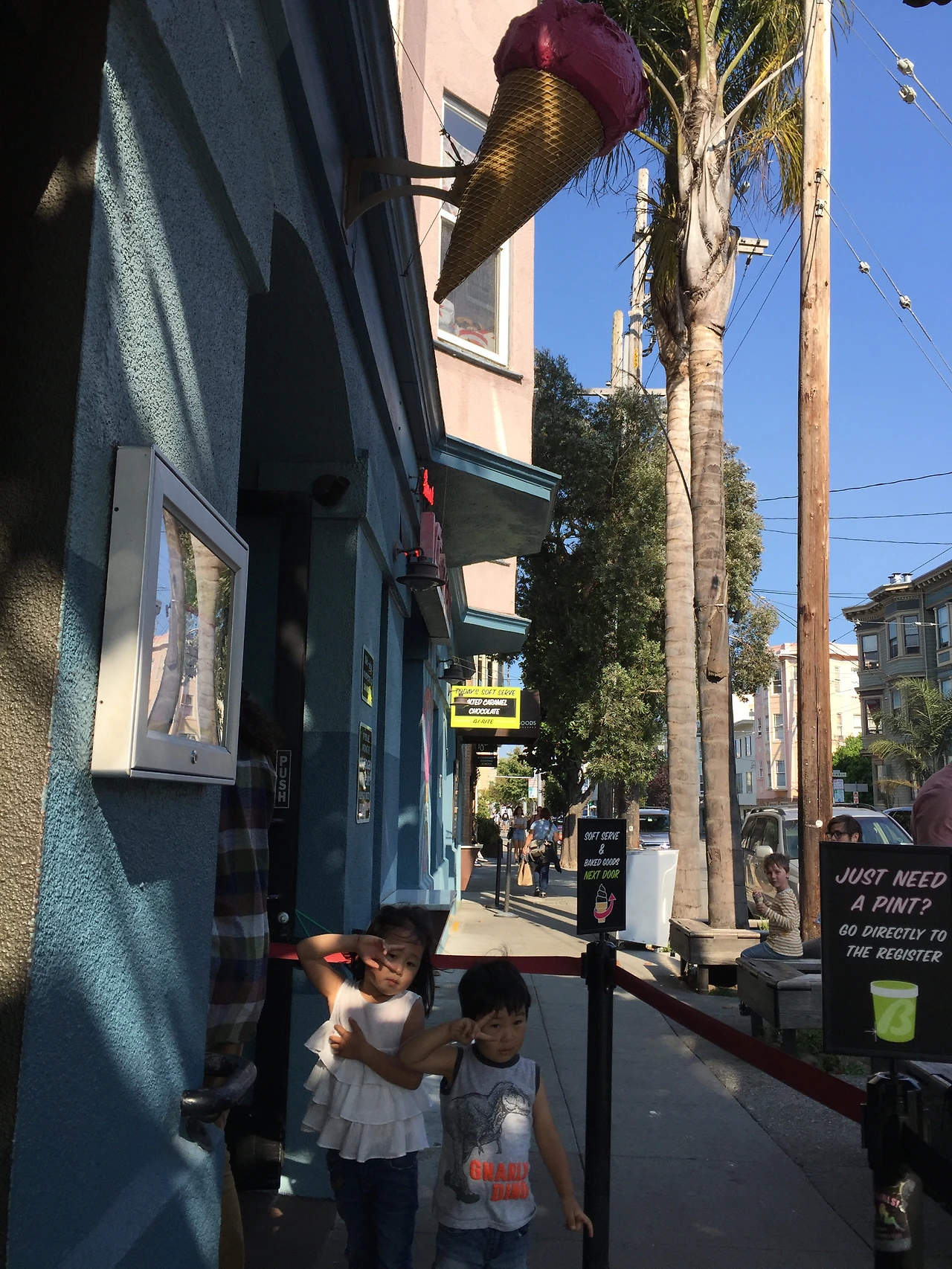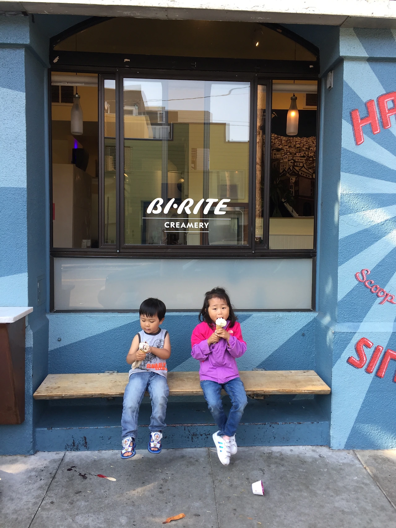 소진 남매의 실망이 짜증으로 폭발하기 전에 또 다른 맛 집이라 책에 쓰여있던 'Bi-rite 수제 아이스크림집'으로 서둘러 향했다. 아이스크림 하나씩 손에 쥐어줘야 집까지 평화롭게 갈 수 있다는 걸 엄마의 본능으로 안다. 아이들의 손으로 옷으로 뚝뚝 떨어지는 아이스크림 닦아주랴 유모차 밀으랴 내 아이스크림 먹으랴 언덕길을 올라가랴 정신이 하나도 없어서 수제 아이스크림의 고급진 맛은 느낄 수 없었다.