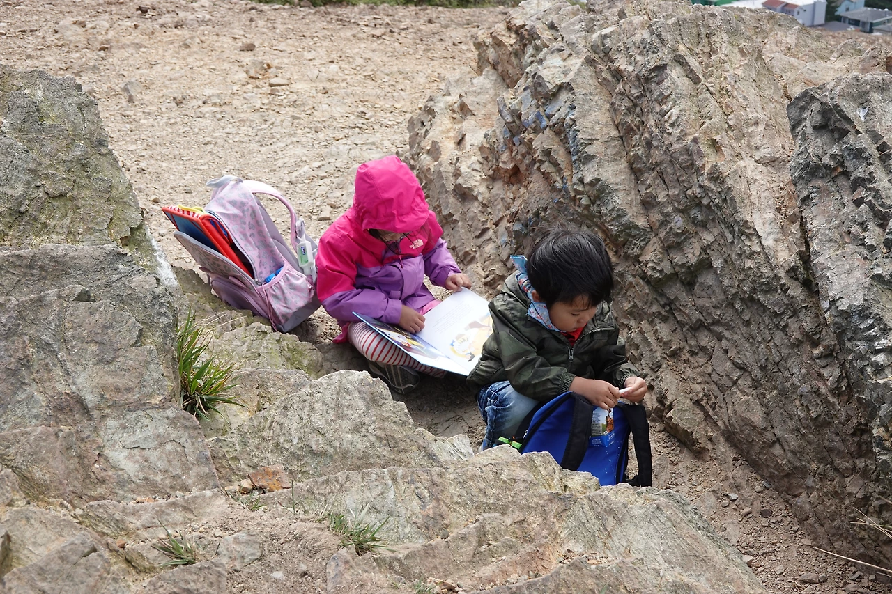높이 올라가면 또 다른 신세계가 펼쳐질 거란 기대감에 세찬 바람 따위는 아랑곳 않고 꼭대기까지 올라갔다. 소진 남매는 이제 탐험을 좀 즐길 수 있게 되었는지 바람이 불어도 흥겹다.