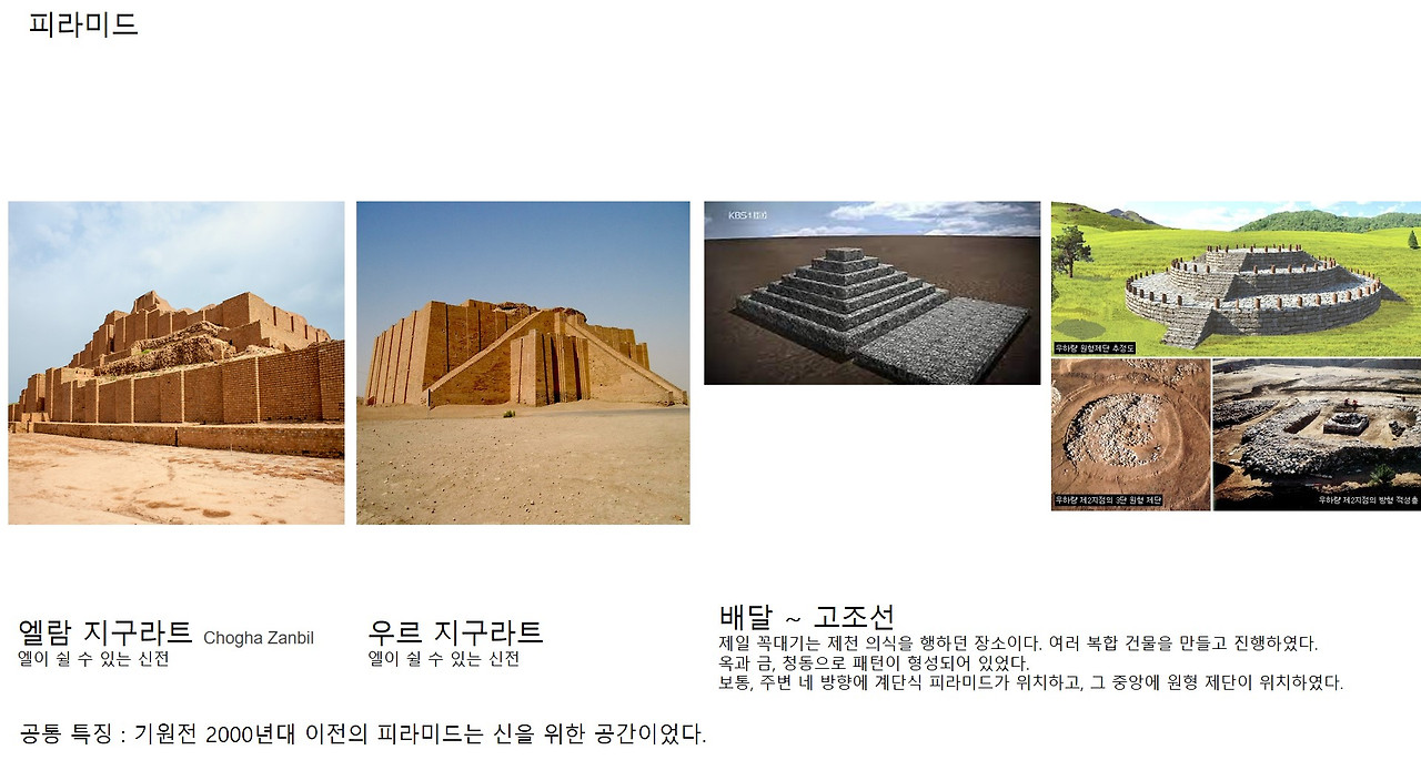 아느에서도 기의 신전은 계단식 피라미드 형태로 12개의 방벽을 지나야만 여신 기에게 다가갈 수 있었다. 피라미드와 유사한 아사달의 제단 역시 아느에서의 형태를 따랐다. 아느로부터의 유산, 이것이 서로 다른 대륙에서 비슷한 시기 출현한 거대 문명에 관한 대답이다.