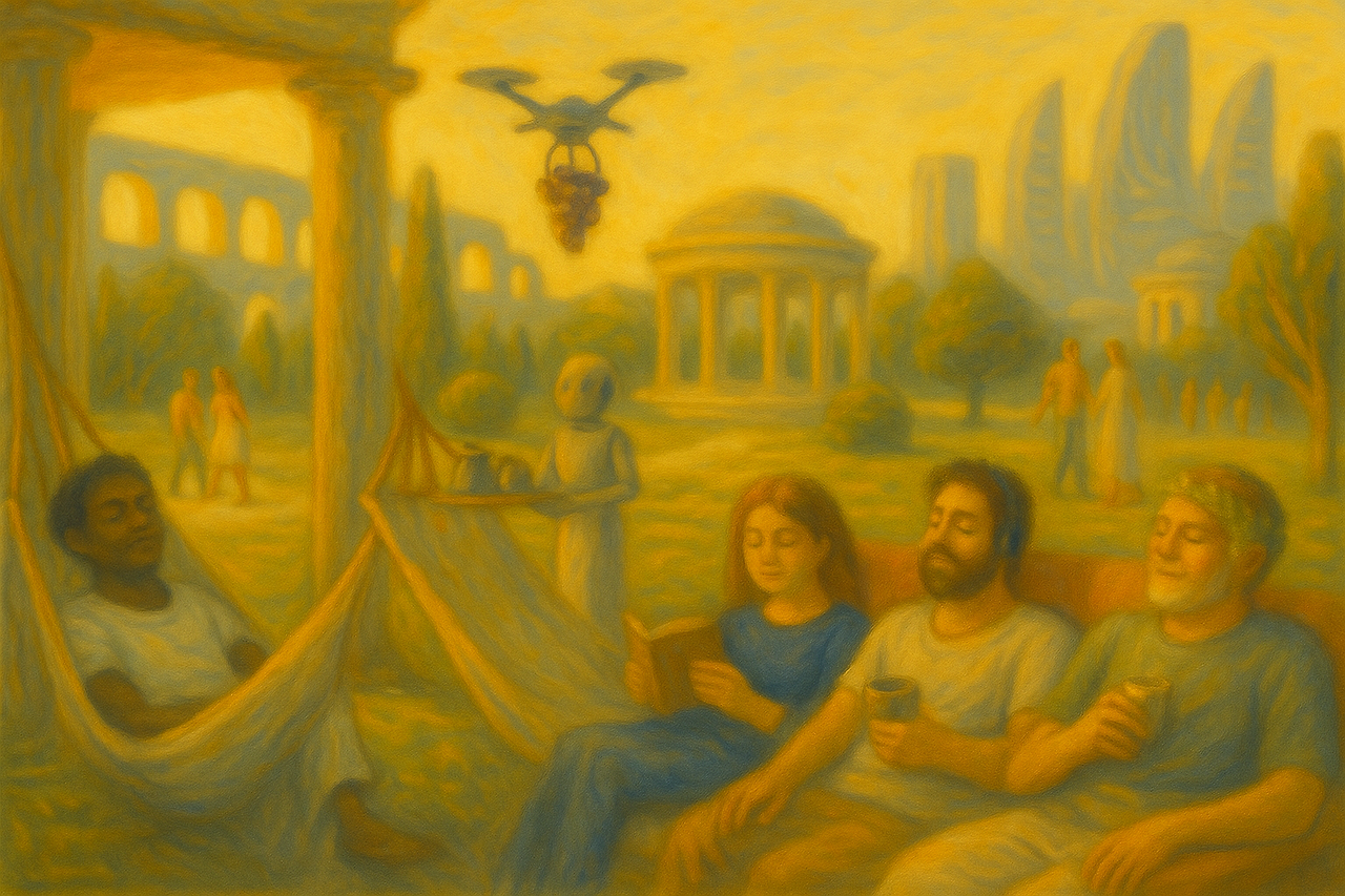 조금 엉뚱한 상상도 해본다. 언젠가 AI의 발전으로, 모든 인류가 노동에서 해방되고 모두가 로마의 귀족처럼 사는 세상이 오진 않을까? 그런 세상을 상상해 보는 것만으로도 마음이 가벼워진다.