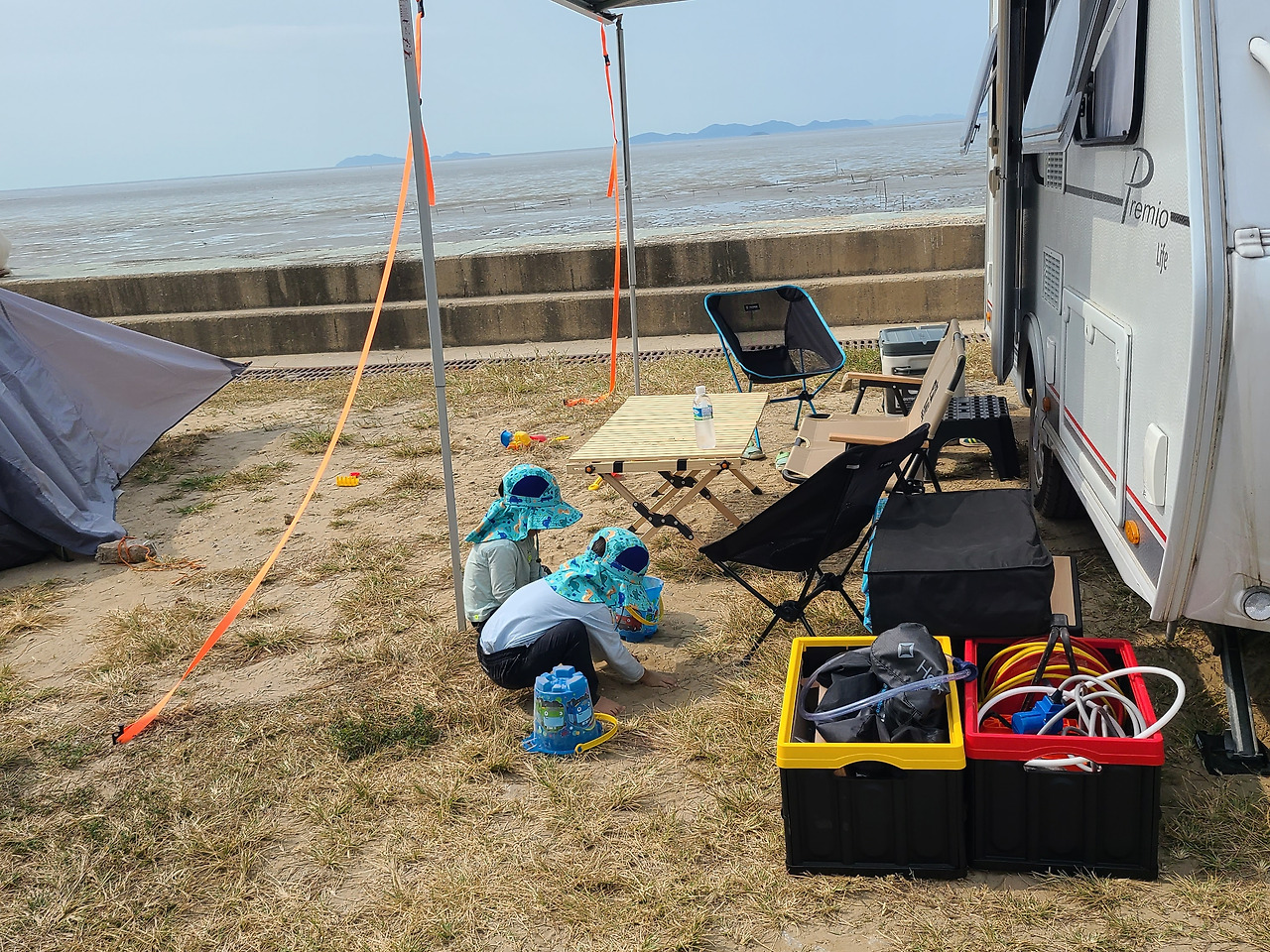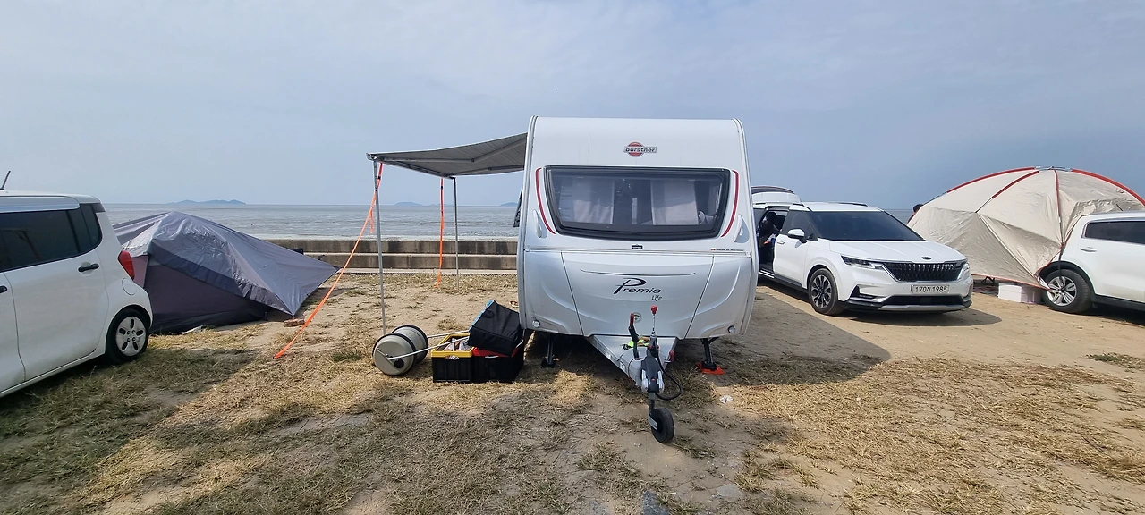 카라반을 그 한자리에 밀어 넣고 분주하게 세팅을 하기 시작했다.