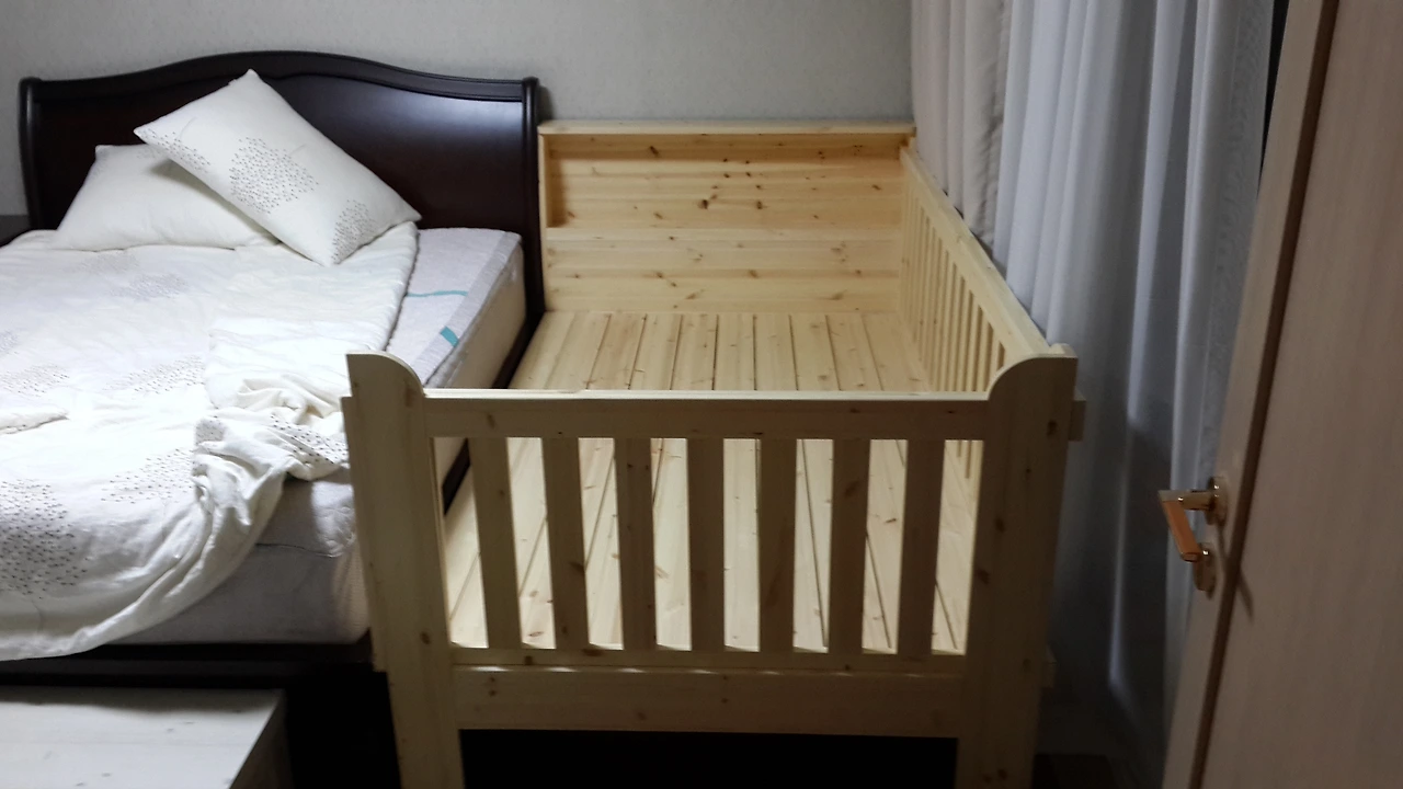 아기 침대이기는 하나 침대 사이즈가 슈퍼싱글에 가까운 사이즈였기 때문에 아이를 재울 때 쓰는