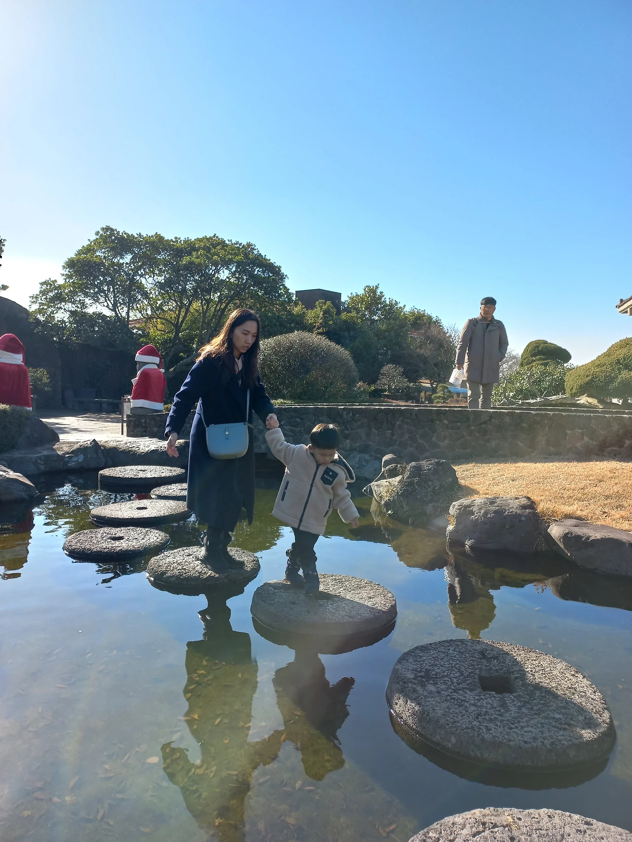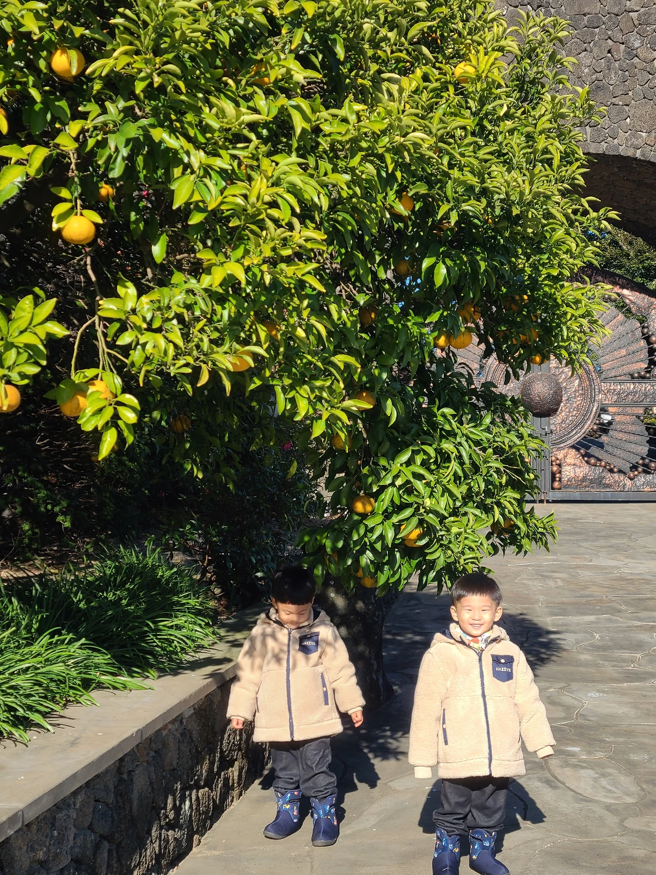아이들과 분재를 보고 돌을 보는데, 분재들 사이에 있는 귤나무가 아이들은 궁금한가 보다.