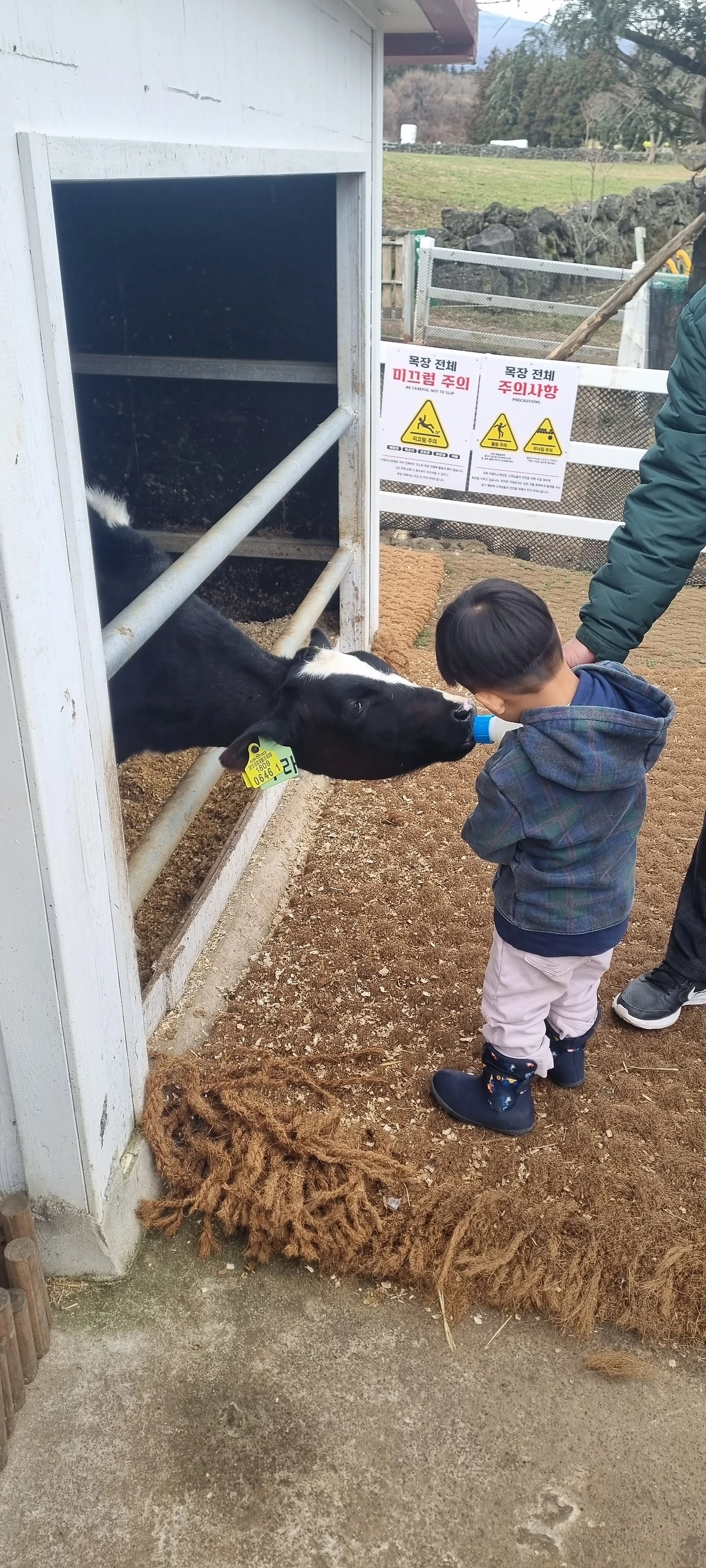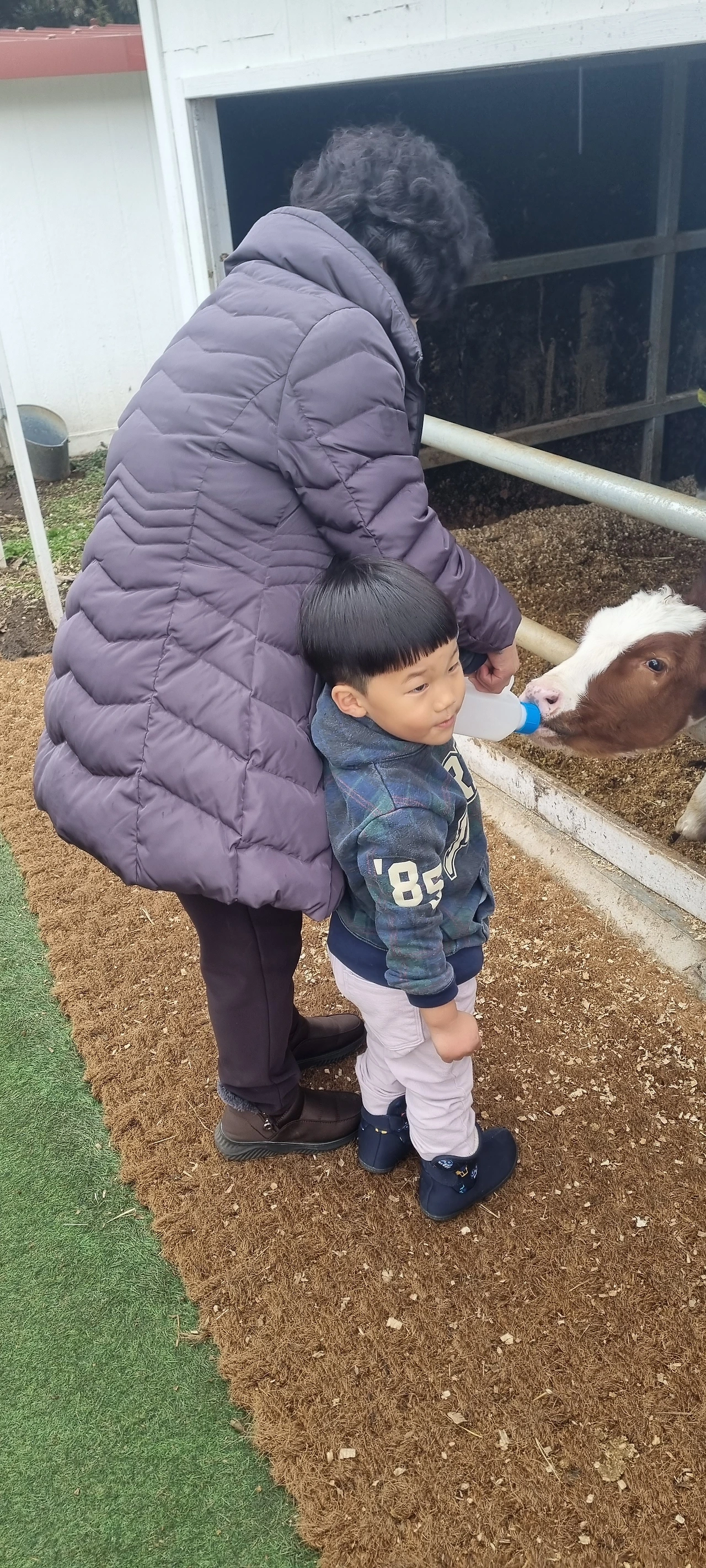송아지 먹이 주기 체험을 하러 우유를 사러 나선다.