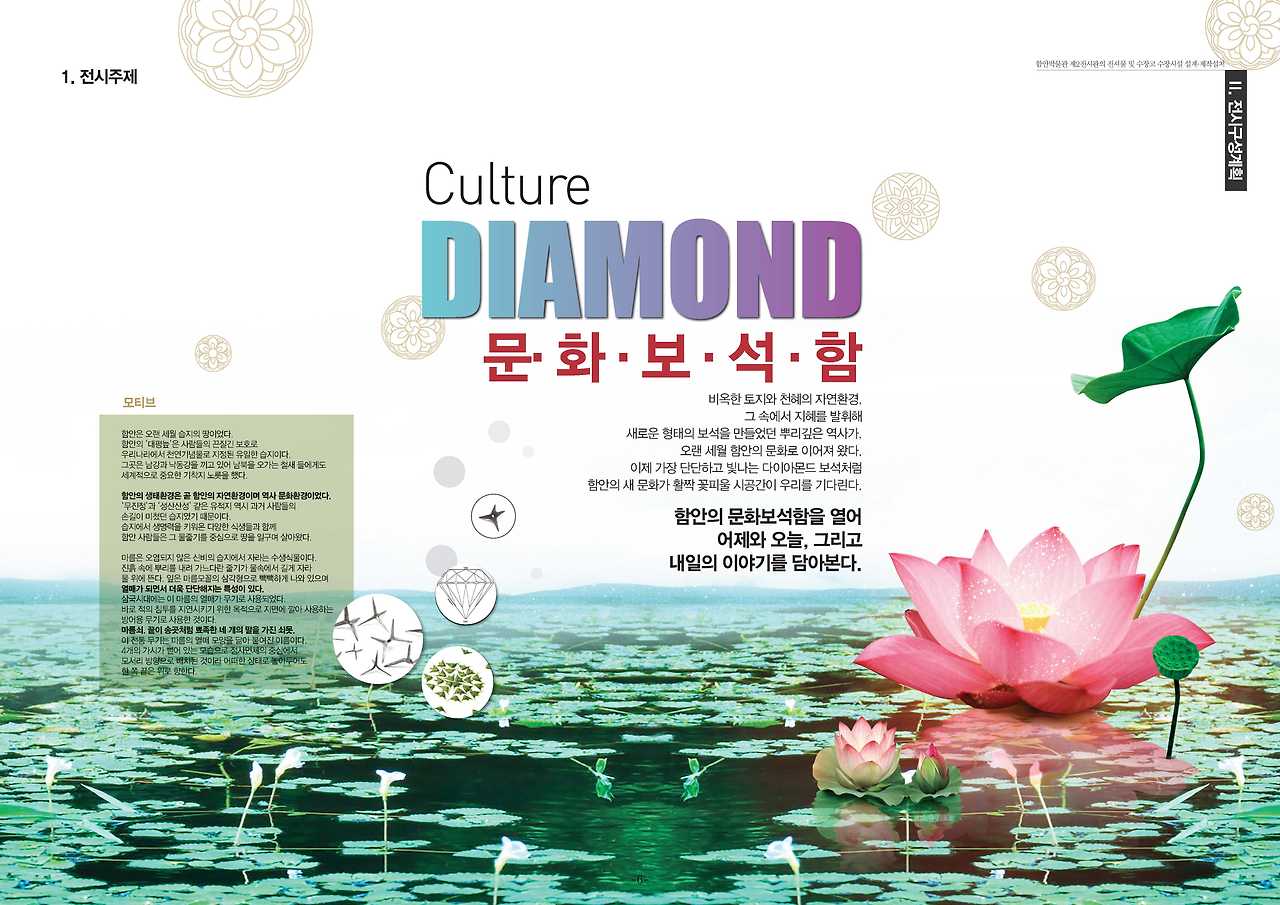 다이아몬드 구조를 가지는 <마름쇠>의 형태를 역사로 보고, 이것이 문화로 이어진다(꽃이 핀다)는 것을 표현하기 위해 지역에서 중요성을 가지는 연꽃을 등장시킴