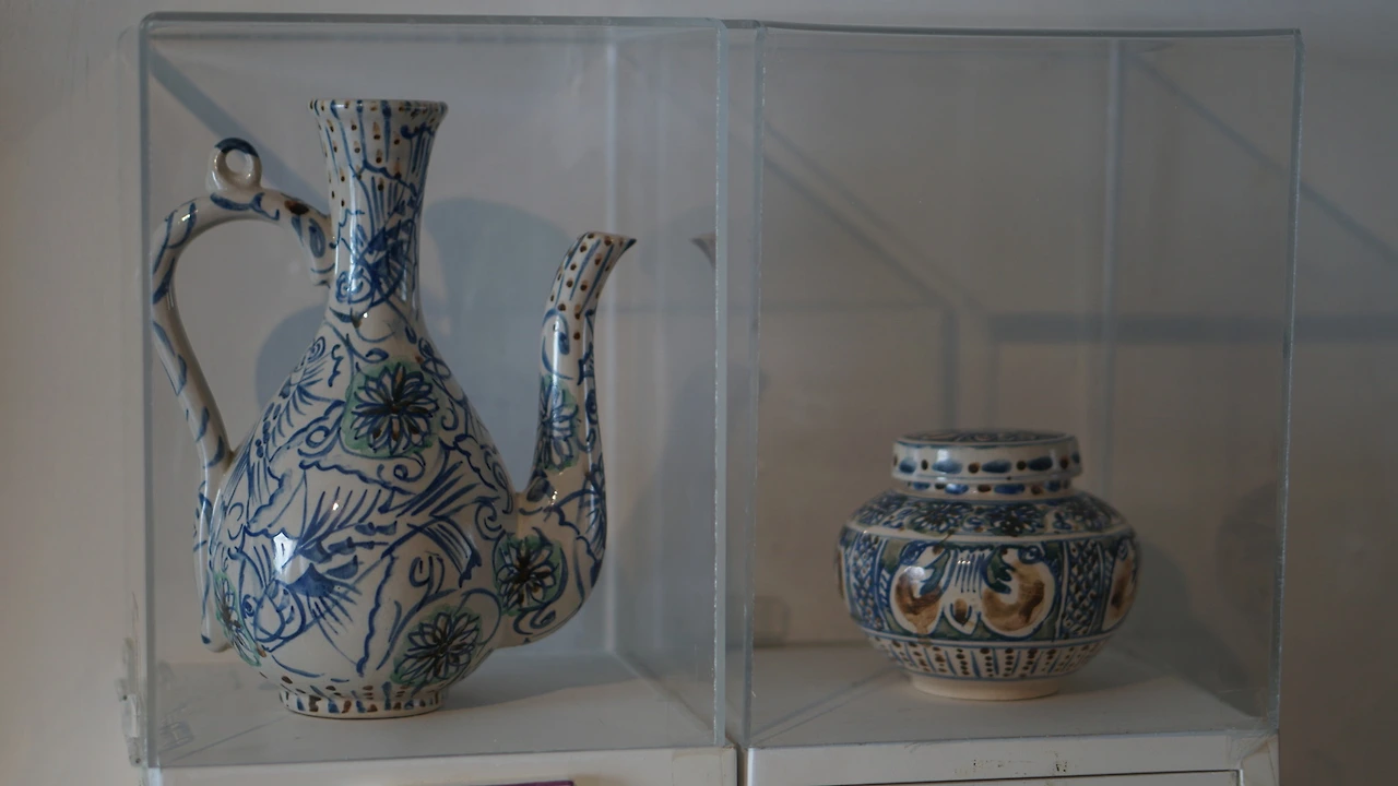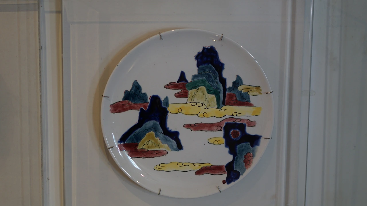 오른쪽은 사각형의 접시에 색채가 가지는 힘을 이용해 끊임없이 다른 도안들이 반복되는 만다라라고 하는 작품입니다. 정말 눈을 뗄 수 없게 하는 작품이죠.