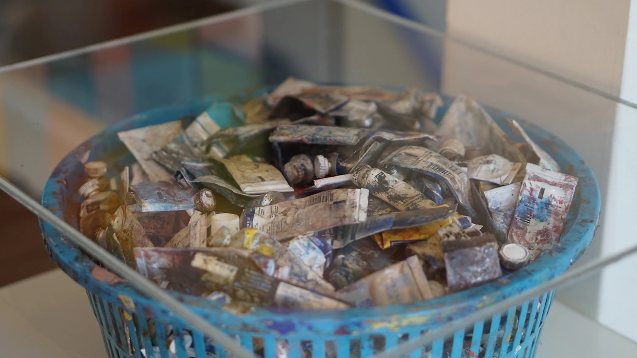 고.전혁림 화백의 데드마스크나 그 당시 대통령들에게 받은 훈장이니 기념품들 보다 눈을 사로 잡은 것은 바로 고.전혁림 화백의 손과 사용하고 버린 물감 튜브들이었습니다. 이것이 바로 '혼자 배우는 경지'에 이른 사람이 어느 정도 노력하고 있는 지를 보여주는 것 아닐까요. 남의 말과 무관하게 꾸준히 자신이 할 것을 하는 것. 그것이 결국 장인을 만드는 것 같습니다.