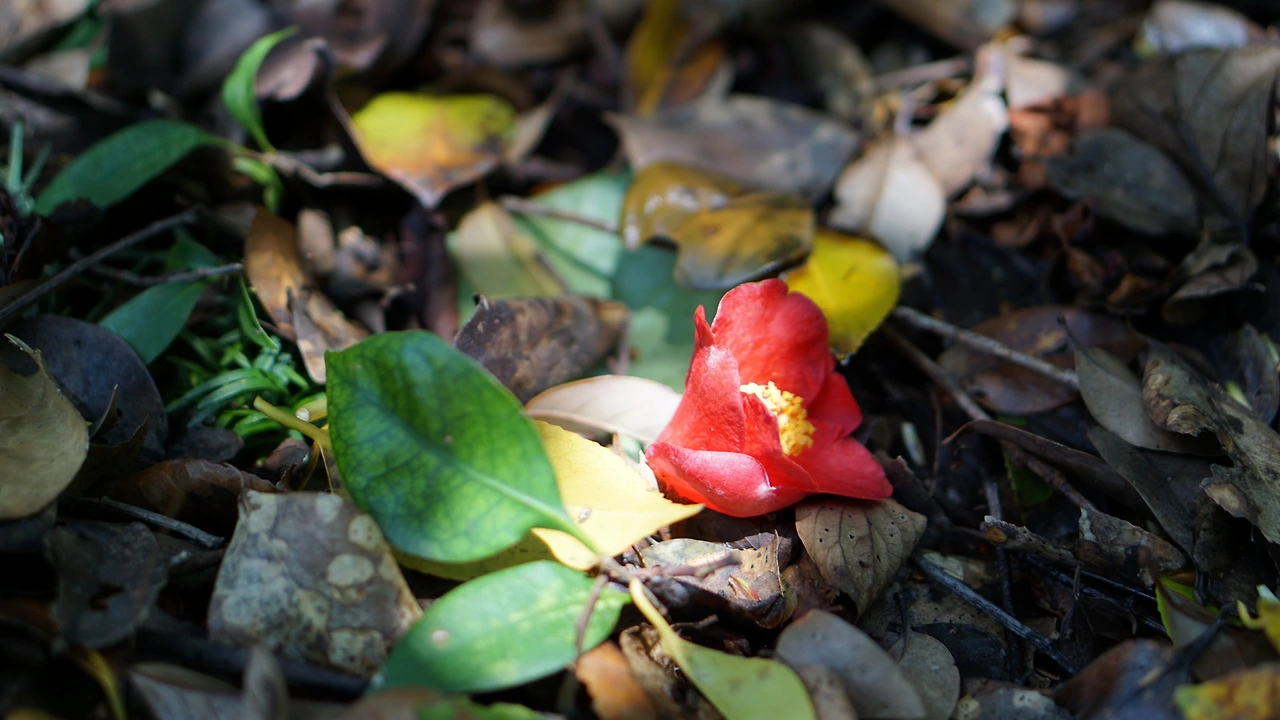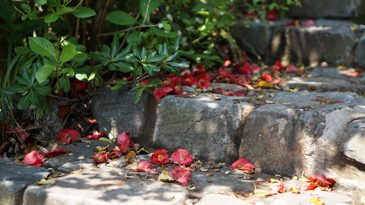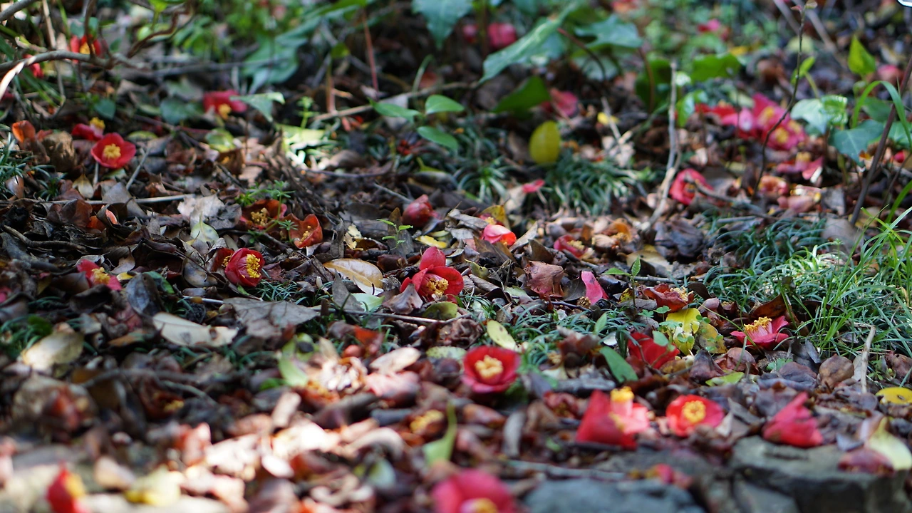 동백 터... 터... 동백이 진 동백 터널이 나옵니다.