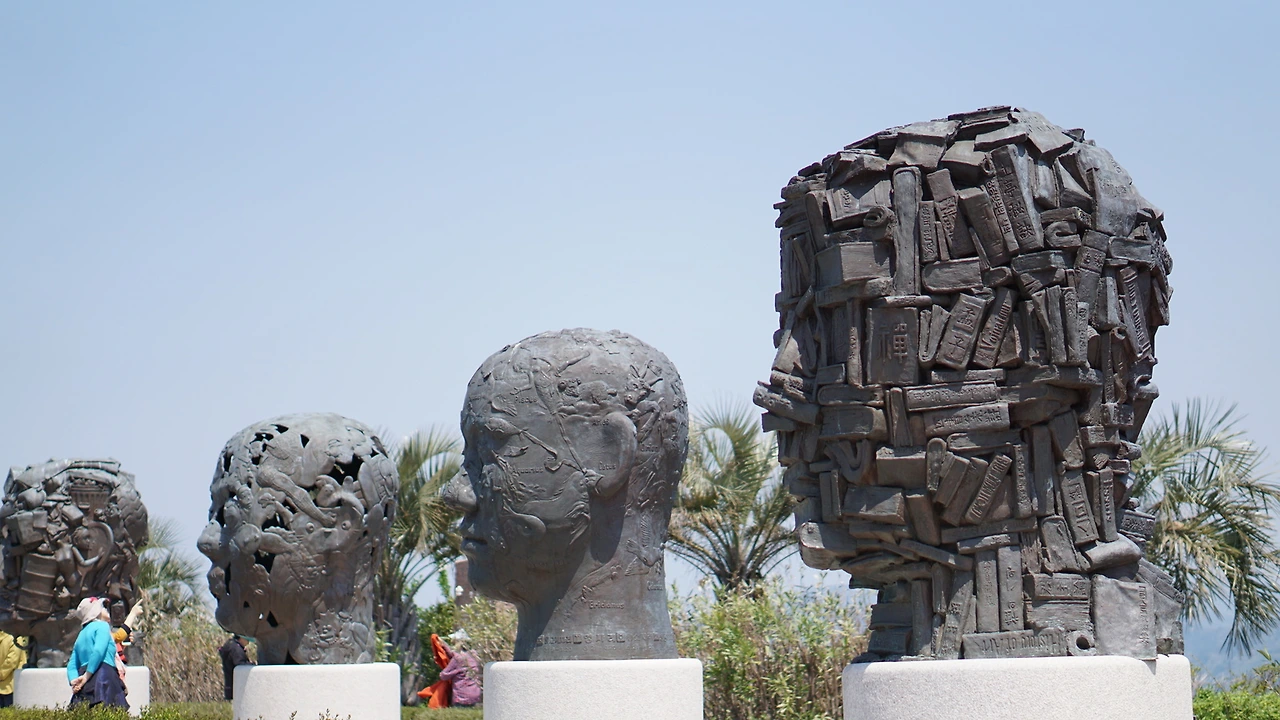 공연장 위쪽에는 사람의 얼구을 다양하게 표현한 조각상이 쭉~ 늘어서 있습니다.