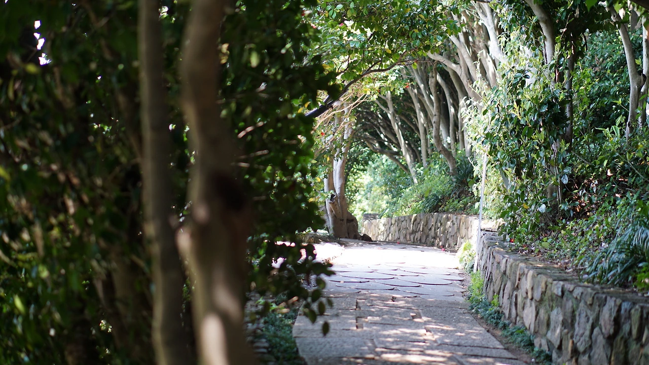 초반엔 조금 가파른 오르막길을 걸어 올라갑니다. 뽕잎 아이스크림을 파는 곳부터 시작이지만, 올라가는 길에도 각종 허브와 동백 등으로 조경이 참 잘 되어 있어서 여기서도 꽤 시간을 많이 보내 버렸습니다.
