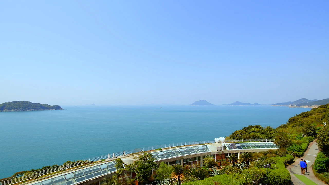 그리고 무지개 다리를 건너서 계단을 올라가면서 섬 한 쪽을 통채로 돌게 됩니다. 전망대만 4곳 정도가 나오는데, 그냥 바다입니다. 바다 풍경을 좋아하거나 기념 사진이 필요하면 좋지만 무릎이 안 좋거나 하면 무지개 다리를 건너지 말고 바로 온실쪽으로 방향을 꺾어 가는 방법도 있습니다.