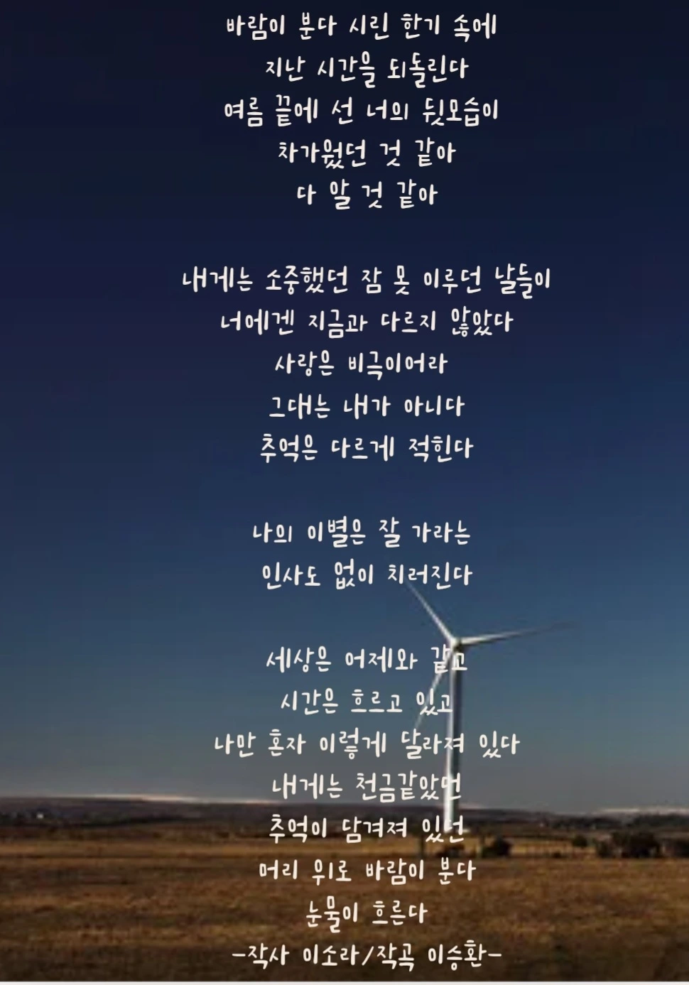 이 책을 읽으니 제목이 비슷해서인지 자꾸만 이소라의 노래 '바람이 분다'가 생각이 난다.