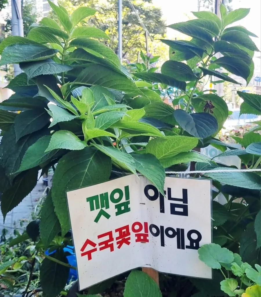 언뜻 보니 그 꽃 이파리가 흡사 깻잎 같았다. 꽃이 피니 수국이라는 걸 알 수 있겠는데 꽃이 없다면 영락없이 깻잎이라고 오인할 만했다.