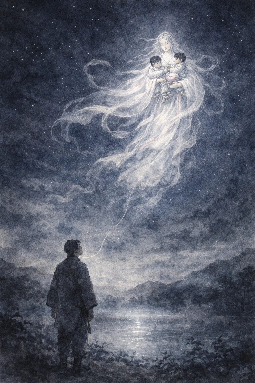 나무꾼의 비극은 선녀를 잃은 것이 아니다. 처음부터 선녀를 만난 적이 없었다는 것이다. 그는 자기 환상을 만났고, 환상을 붙잡았고, 환상이 걸어 나가는 것을 지켜보았다. 만약 나무꾼이 날개옷을 숨기지 않았다면 — 선녀가 언제든 떠날 수 있는 자유를 가진 채로, 그래도 함께하는 시간을 쌓았다면 — 이야기는 달라졌을까. 설화는 그 가능성을 보여주지 않는다. 다만 그 가능성을 상상하게 만든다.