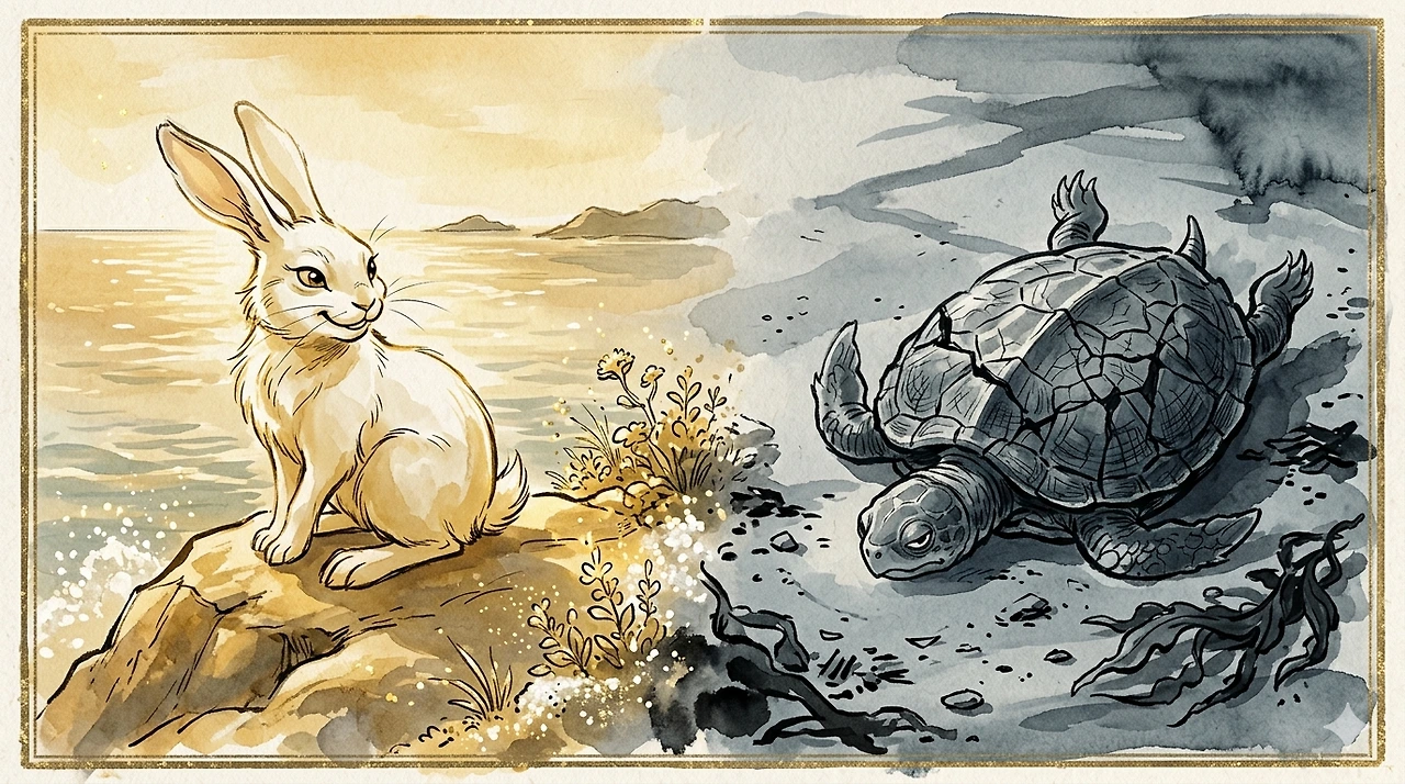 반면 토끼는 정반대다. 토끼는 어떤 역할에도 고정되지 않는다. 위기 앞에서 즉흥적으로 거짓말을 만들어내고, 상황을 뒤집고, 빠져나간다. 융의 용어로 말하면, 토끼는 건강한 자아의 유연성을 보여준다. 하나의 페르소나에 갇히지 않고, 상황에 따라 자유롭게 대응하는 능력. 이것은 교활함이 아니라 생존을 위한 심리적 민첩성이다.