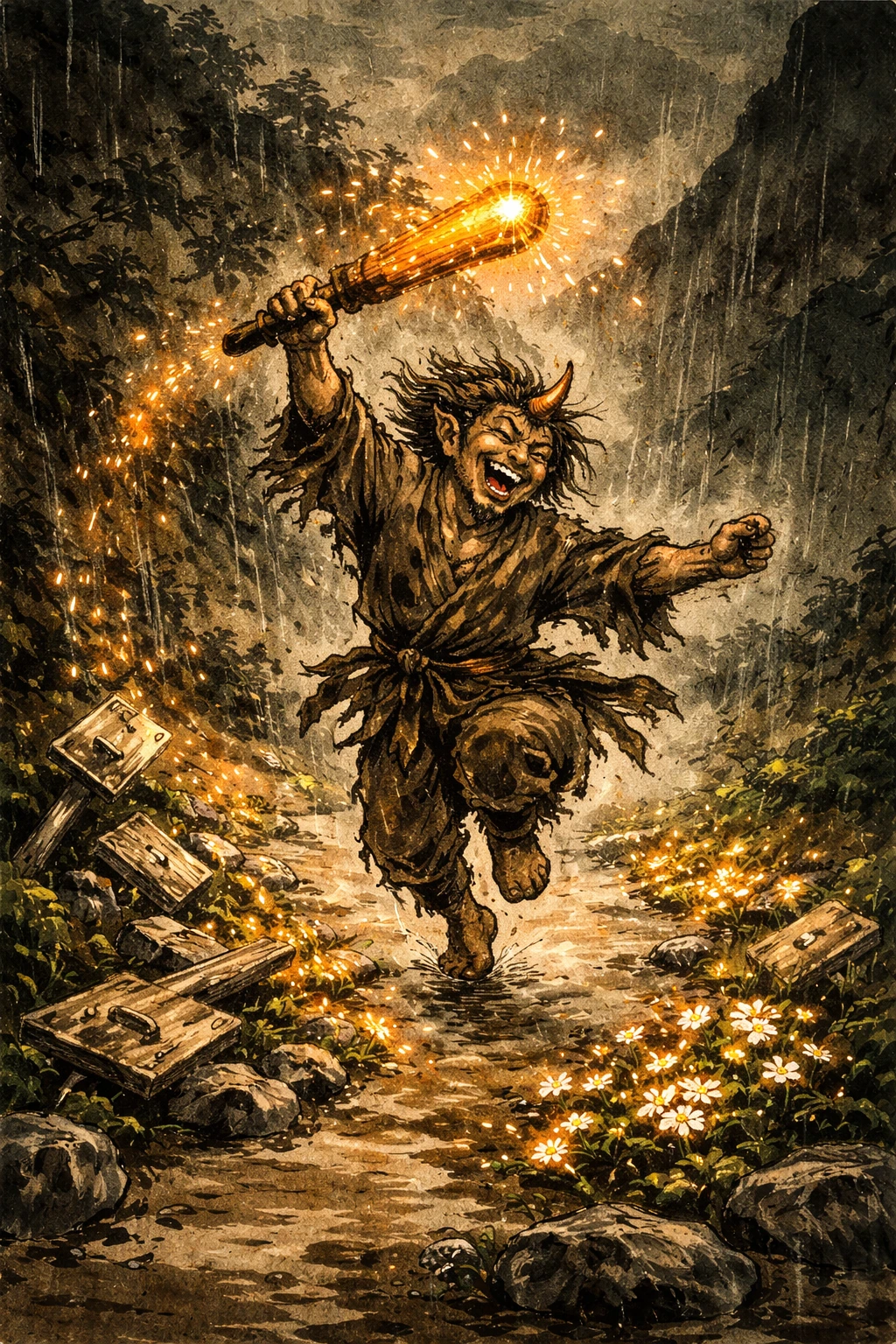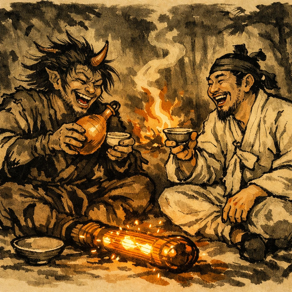가난한 나무꾼이 산에서 도깨비를 만났다. 도깨비는 무섭지 않았다. 술을 좋아하고, 씨름을 좋아하고, 사람 놀리기를 좋아하는 존재. 나무꾼은 도깨비와 밤새 술을 마시고 씨름을 했다. 도깨비는 즐거워하며 나무꾼에게 방망이를 주었다. "뚝딱뚝딱" 두드리면 원하는 것이 나오는 방망이.