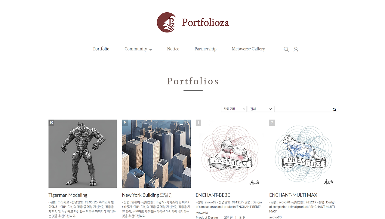 2022년 12에 오픈된 포트폴리오자(Portfolioza) 플랫폼은 그래픽, 아트, 코딩 등 다양한 분야에서 포트폴리오를 공유할 수 있는 사이트입니다.