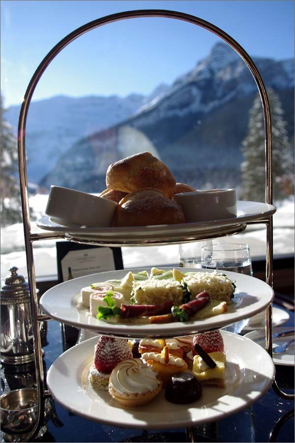 샤토 레이크 루이스(Chateau Lake Louise)에 도착하자마자, 호텔 프론트에 레이크뷰 라운지의 애프터눈 티 세트 예약을 부탁했다. 애초 오후 휴식 시간에 마시는 차라고 하지만, 3단 접시에 여러가지 조각 케이크와 초콜릿, 과일 등을 세팅해 제공하는 애프터눈 티 세트는 그 자체로 한 끼의 식사였다. 기대를 실망시키지 않았다. 다만, 가격이 좀 비싼 게 흠인데 그렇다고 해도 전혀 아깝지 않다. 두 사람분 애프터눈 티 세트 가격은 총 C$91.90이었다. 2명분 애프터눈 티 세트 가격이 C$78.00, 세금(tax) C$3.90, 그리고 팁(Gratuity) C$10.00 세트 메뉴가 필요없다면 차만 시켜서 마실 수도 있다.