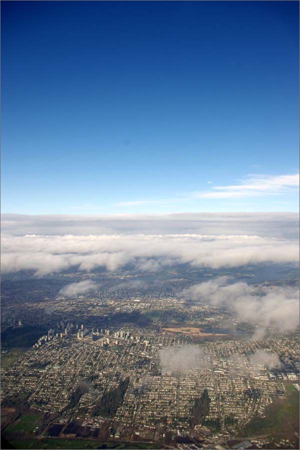 해외여행 때 비행기 안에서 도시 전체를 한 눈에 내려다보는 일은 언제나 가슴 설렌다. 이륙 때이건 착륙 때이건 관계없다. 캘거리로 가는 에어 캐나다 국내선을 타고가면서 내려다 본 밴쿠버 일대. 배산임수라고 해야 하나? 등 뒤에는 산이 병풍처럼 서 있고 앞으로는 바다와 맞닿는 거대한 물줄기가 흐른다. 건물들은 다운타운 일부를 제외하고는 단층들이다. 녹지대도 적잖게 눈에 띈다.