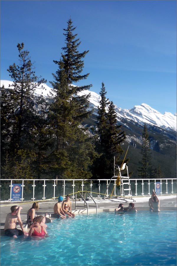 밴프(Banff)의 관광 역사는 온천 개발로부터 시작됐다. '어퍼 핫 스프링스(Upper Hot Springs)'는 1883년 밴프국립공원이 만들어진 계기가 된 온천이 발견된 케이브&베이신(Cave&Basin)보다 1년 늦은 1884년에 발견되었다. 1996년 대대적인 보수 공사를 거쳐 오늘날의 모습을 유지하고 있다. 어퍼 핫 스프링스는 설파산 곤돌라를 타는 곳에서 그리 멀지 않다. 유황 온천으로 유명한데 온천수의 평균 온도는 38℃. 내가 간 날은 39℃였다. 온천 맛는 겨울철이 진짜다. 찬 바람에 얼굴은 시원하고 몸은 뜨끈 뜨끈해지며 사람을 노곤하게 만든다.
