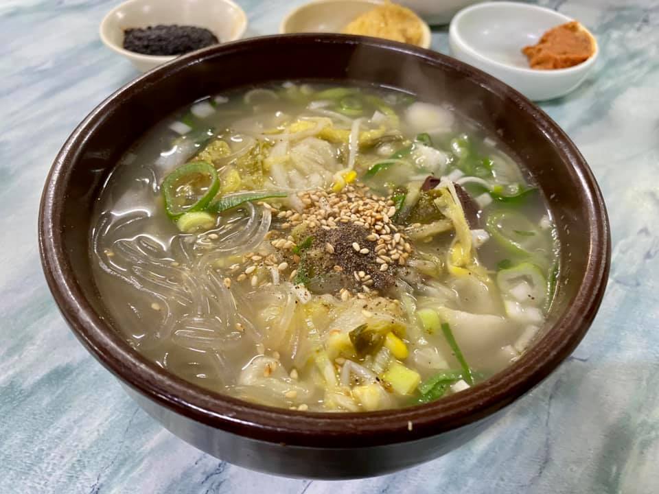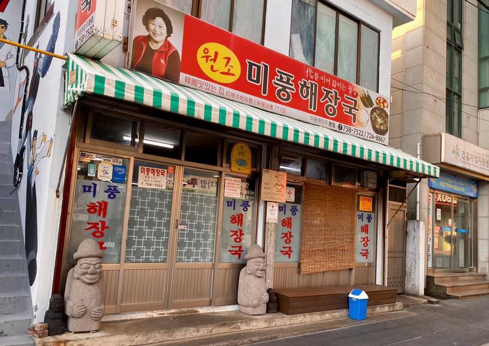 제주 <미풍해장국>. 선지와 당면을 넣은 슴슴한 배춧국 같은 해장국. 맵고 짜지 않아 내 입맛에 잘 맞는다. 묵은 갓김치와의 궁합도 좋다. 물론 MSG의 도움을 받은 맛. 난 크게 상관하지 않는다. 가끔씩 먹는 거라서. ^^ 양념을 넣으면 매운맛의 해장국을 맛볼 수 있다. #2021_0224