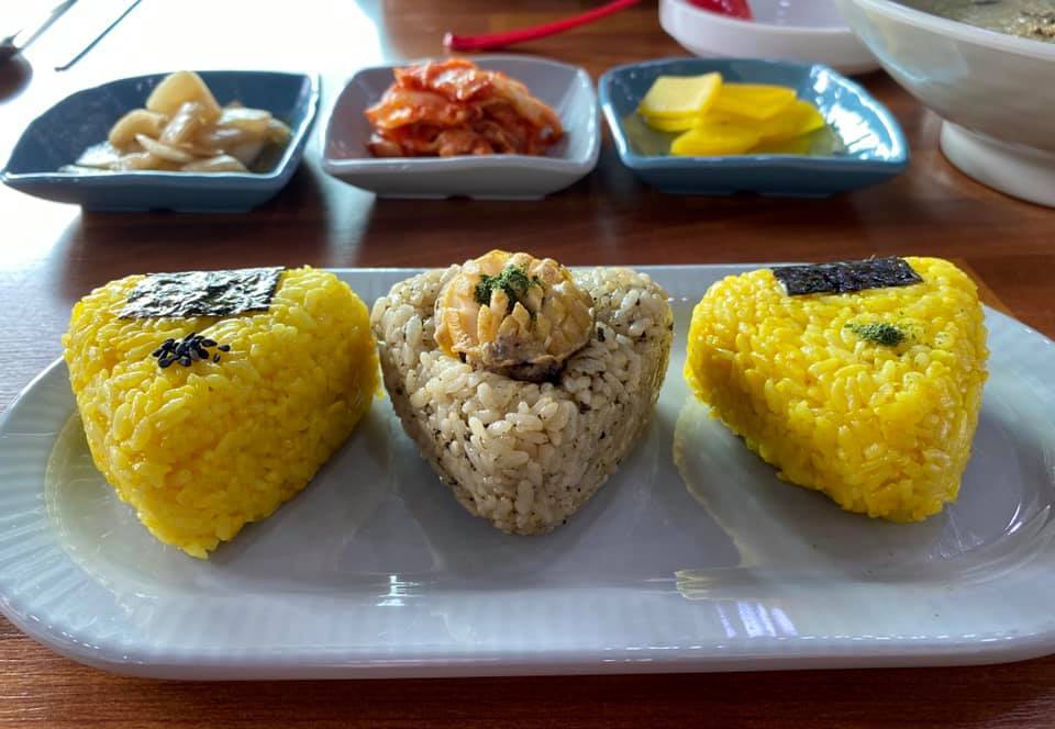 떠나오기 전 제주에서의 점심식사는 보말칼국수, 보말죽, 도담밥 3종 세트. 도담밥은 안에 잘게 다진 갈비가 들어가 있는 오니기리 모양의 주먹밥. <자매국수>가 브레이크 타임이라 근처에 있는 식당 <제주에 가면>에 갔다. 깔끔한 한끼를 먹기에 좋다. #2021_0224
