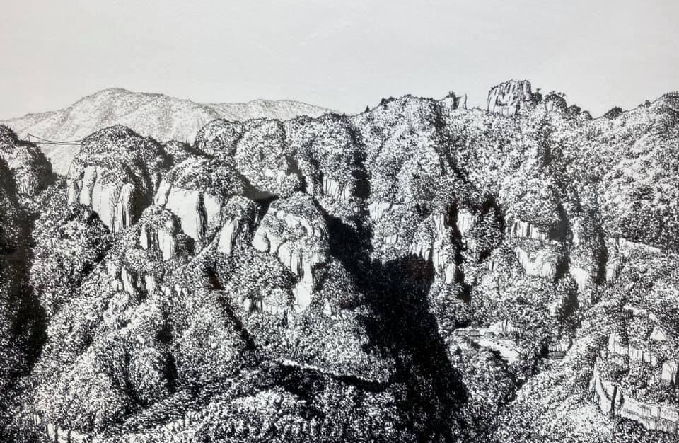 그는 페이스북에서 '삽자루'라는 별칭으로 더 익숙하다. 페북에는 펜화 이야기보다 주말농장 이야기가 더 많을 때도 적잖다. 안충기는 현직 <중앙SUNDAY> 아트전문기자다. 그리고 펜 화가다. 비행산수(飛行山水) - 하늘에서 본 국토. 내일(23일)까지 열리는 안충기 펜화 전시회 제목이다. 이 주제는 6년째 <중앙SUNDAY>에 연재하는 코너 이름이기도 하다.