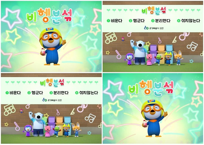 인천시는 6월 5일 '환경의 날'을 맞아 인기 애니메이션 <뽀로로>와 함께 제작한 '비헹분섞송' 영상을 공개했다고 3일 밝혔다.