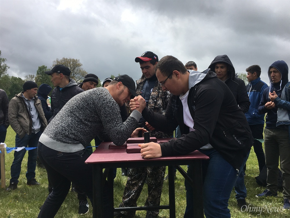 우리나라의 '씨름'과 비슷한 경기 '쿠레시(Куреш)'도 눈길을 끌었다. 상대방을 바닥에 먼저 눕히면 점수를 딴다. 4점을 먼저 따는 사람이 이기는데, 50kg대, 60kg대 등 10kg 단위의 체급 경기가 먼저 열린다. 마지막에는 체급별 우승자들이 겨뤄 최종 우승자를 가린다. 우리나라 씨름으로 치자면 한라장사와 백두장사 등을 먼저 뽑고, 마지막에 천하장사를 뽑는 셈이다. 쿠레시 최종 우승자에게는 양 한 마리가 부상으로 주어진다.