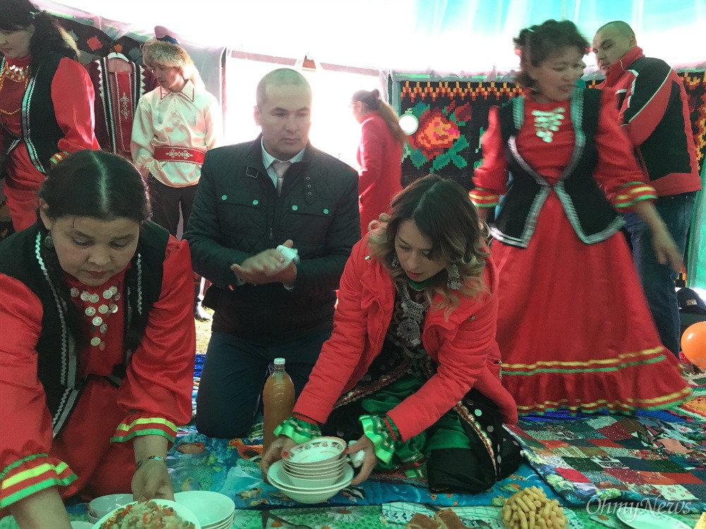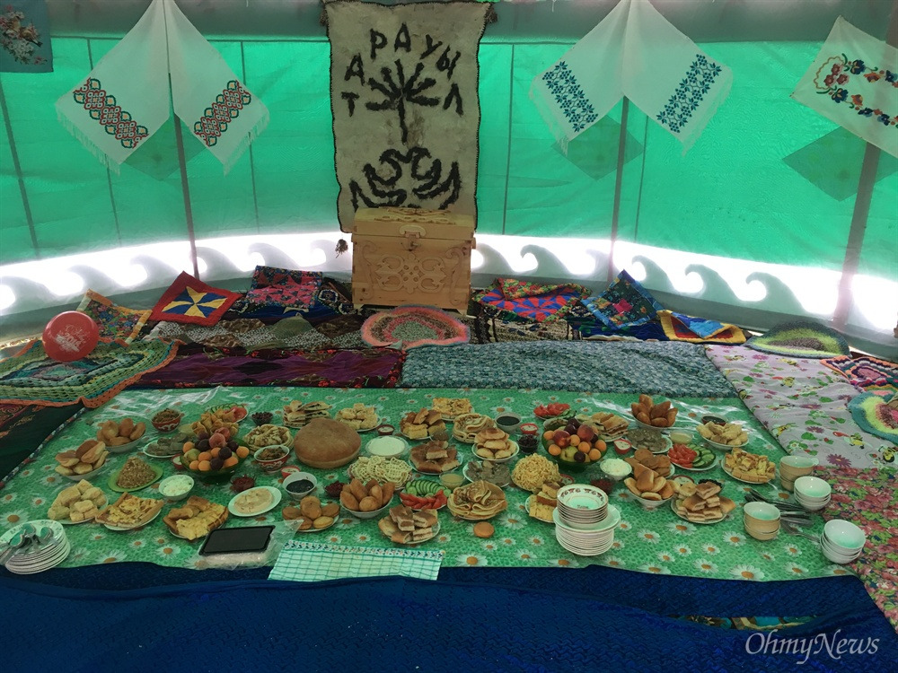 경기가 열리는 동안 유르타 안에서는 '전통음식 축제'가 벌어졌다. 말고기와 양고기, 다양한 유제품이 메인 요리였다. 유목민족들은 축제나 귀한 손님이 왔을 때 반드시 내놓는 게 양고기다. 바시키르 국민 과자인 '착착(ЧАК ЧАК)'이나 말젖·양젖으로 만든 전통 발효주 '쿠미스(Кумыс)' 등 진수성찬이 가득했다. 입맛은 달라도 정성만큼은 마음으로 따뜻하게 전해졌다. 바시키르의 음식에 관해서는 다음 편에서 소개할 예정이다.