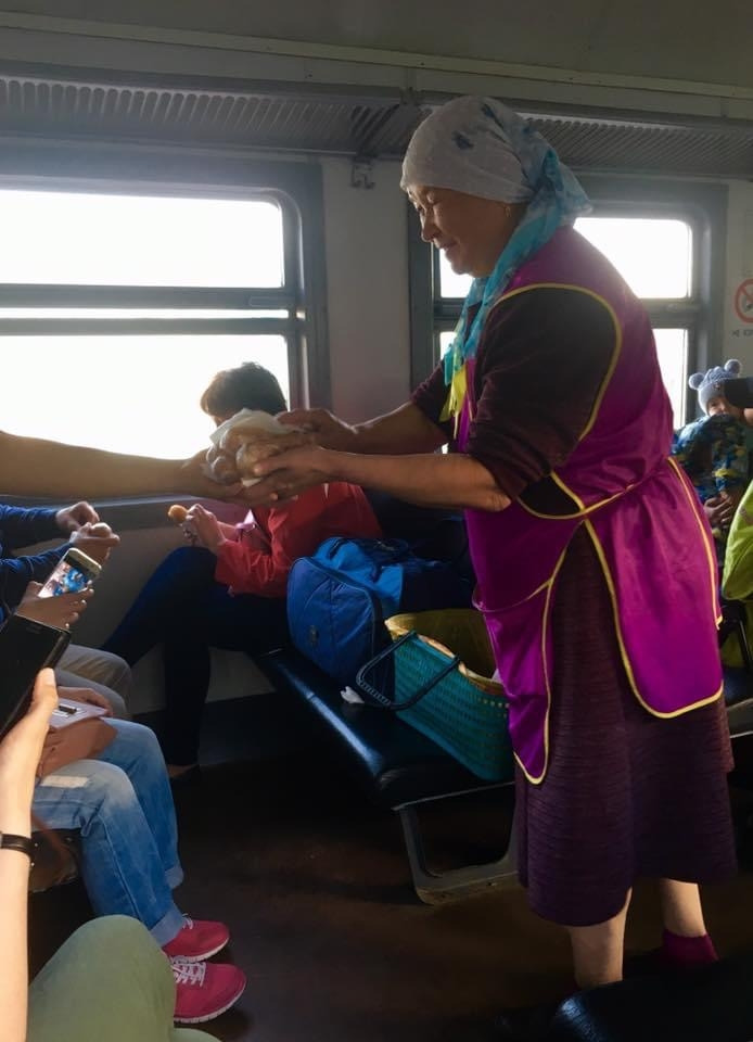 러시아 서부 바시키리야. '앗쓰~우파' 구간. 젊은 세대는 모를 수도 있지만, 우리나라로 치자면 옛날 통일호 쯤 된다. 비둘기호와 무궁화호 사이. 플라스틱 바구니에 수제 핫도그를 담아 칸칸이 돌아다니며 파는 할머니가 정겹다.