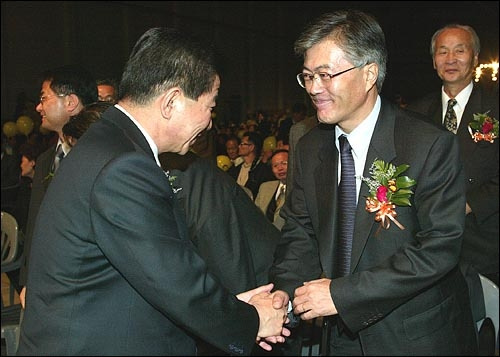 2003년 1월 15일 문재인 변호사 인터뷰는, 지금은 고인이 된 <오마이뉴스> 후배, 故 김영균 기자가 노력한 결과다. 당시 정치 데스크를 맡았던 나는 문재인 변호사를 설득해 모셔온 김 기자와 함께 인터뷰 아닌 인터뷰를 진행했다. 사진은 권우성 기자.