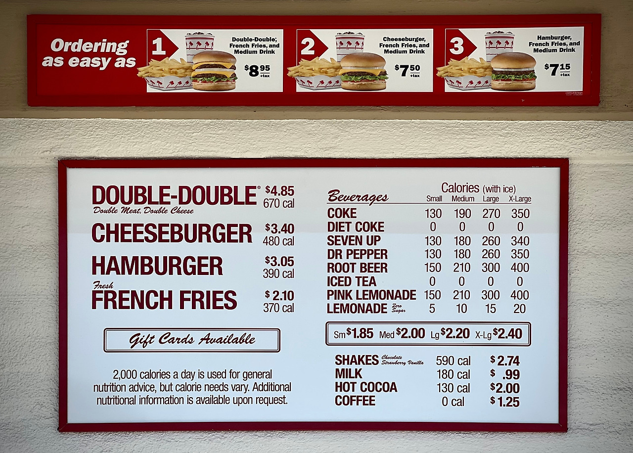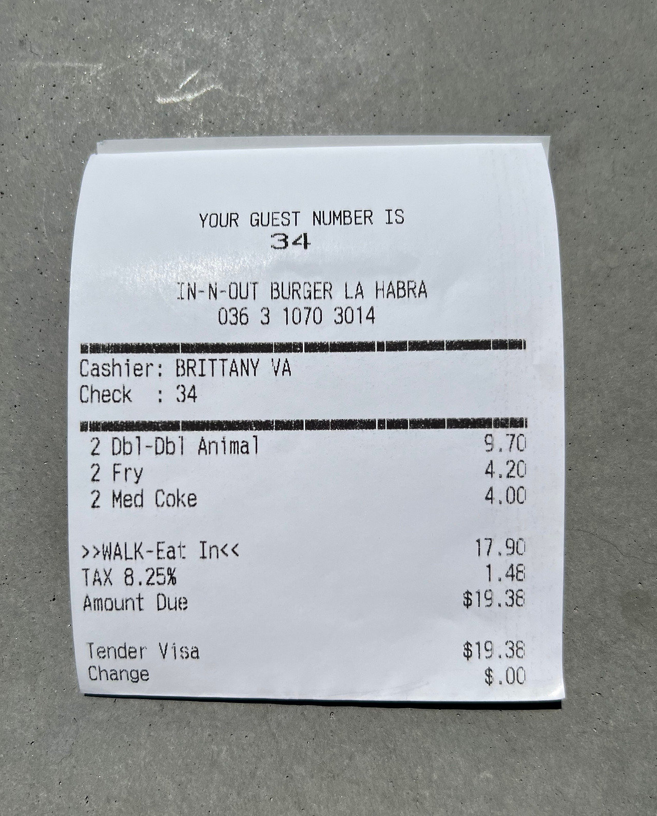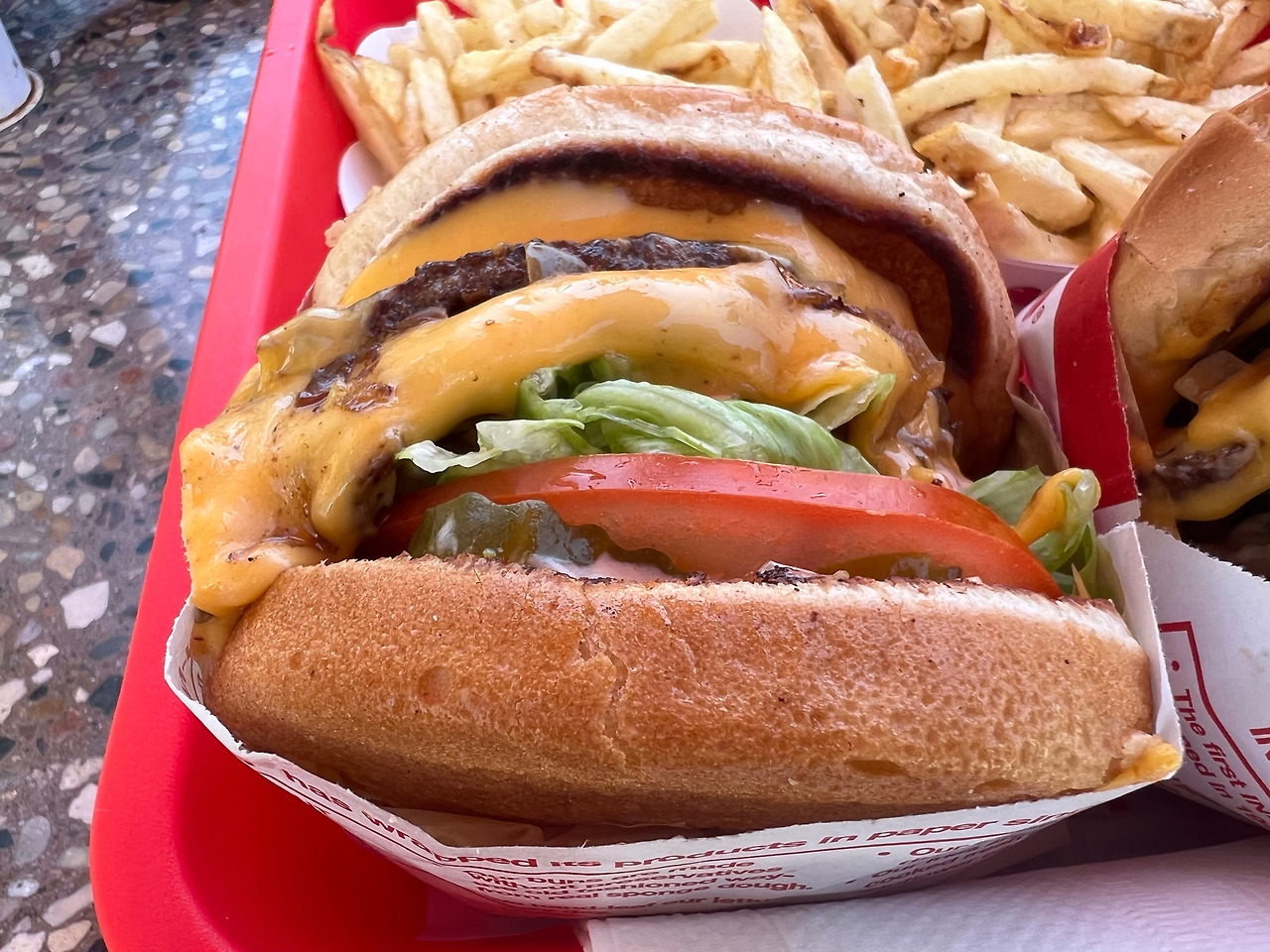 LA에 왔으니 <인앤아웃 IN-N-OUT> 버거로 아점. ^^ 애니멀 스타일(더블 치즈) 콤보 세트로 주문. 팁을 어떻게 줘야 하는지 묻자, 우린 팁을 받지 않는데 말씀만으로도 정말 고맙다며 활짝 웃는다. 드라이브 스루와 일반 주문이 함께 이뤄진다. 먹는 건 야외 테이블에서. 다 먹고나면 쓰레기를 버리고 트레이는 휴지통 위에 올려놓는다. <인앤아웃>은 팁을 주지 않아도 되니 계산할 때 부담이 덜하다. #2022_0722