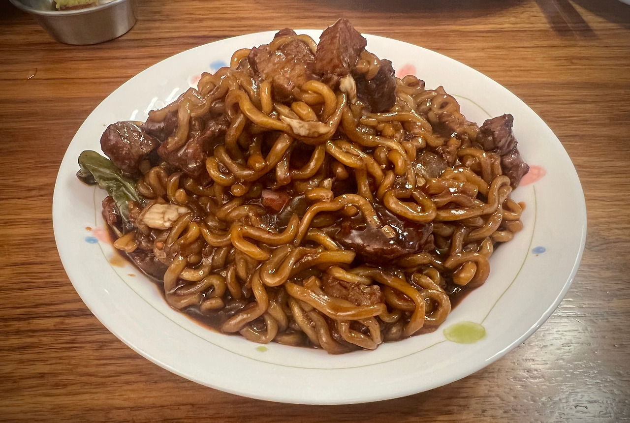 남은 BBQ 고기 잘게 잘라넣어서 만든 짜파구리. ^^