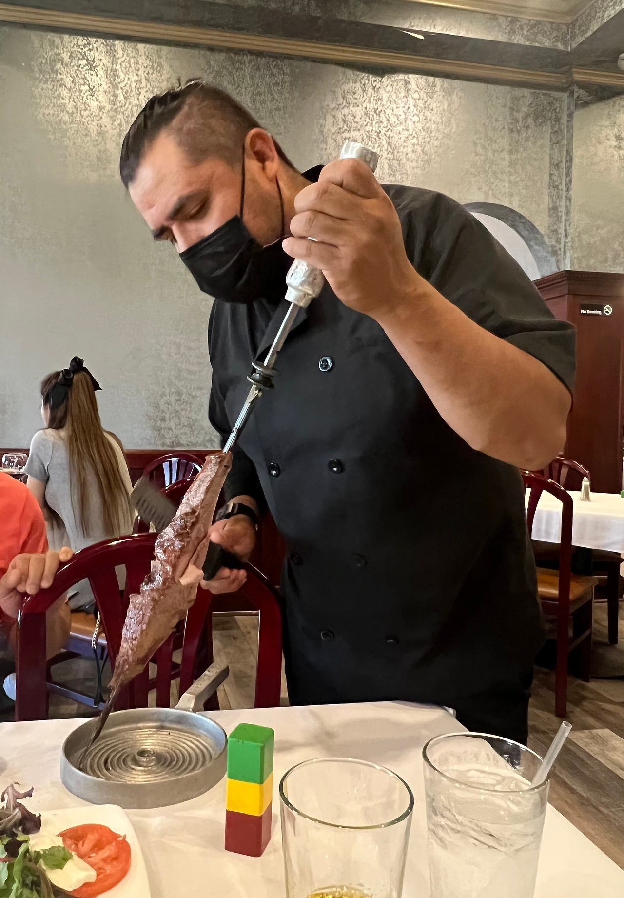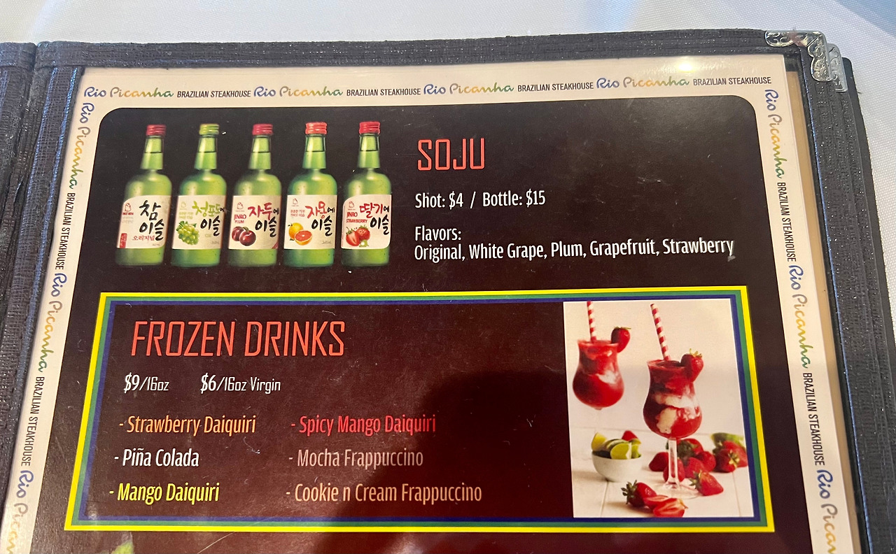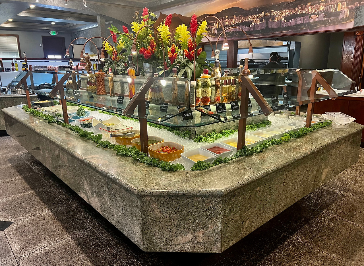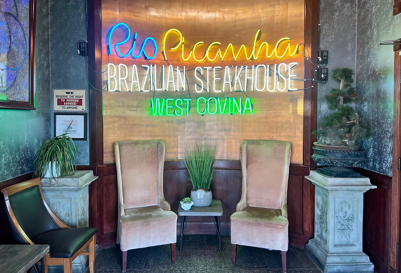 <리오 피카냐>는 LA 동부 웨스트 코비나(West Covina)에 위치해 있다. 좌석은 250석 규모. 무제한으로 제공되는 BBQ 요리 값은 1인 50달러. 샐러드와 밥 등 사이드 디쉬는 무료, 주류와 음료는 별도. 계산할 땐 텍스와 팁이 추가된다. 요즘은 팁이 대략 15~20% 선이라고. #2022_0713