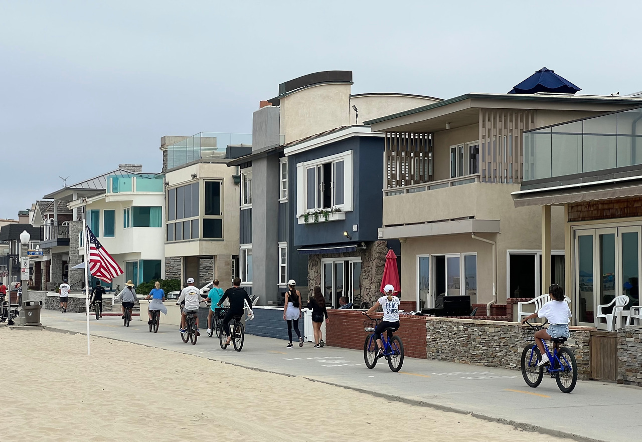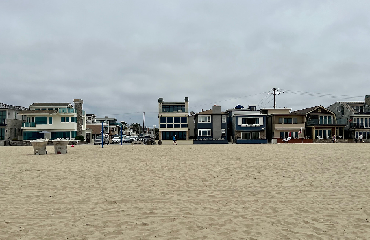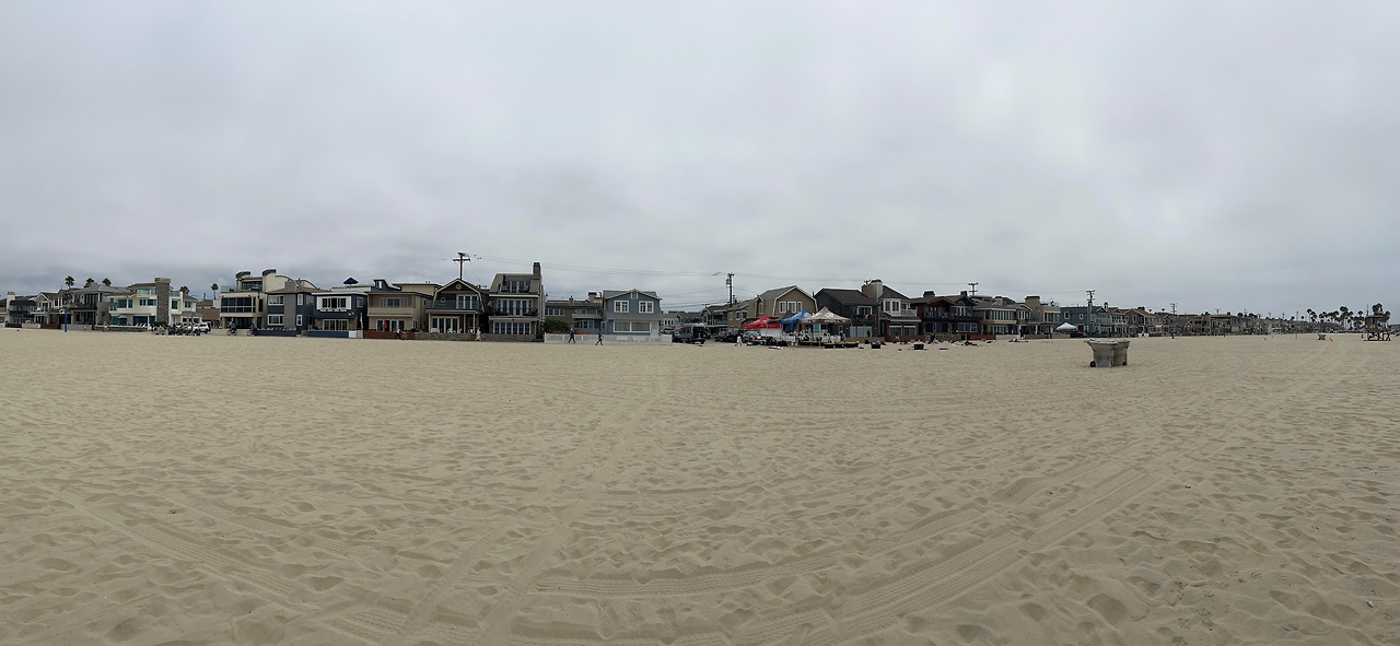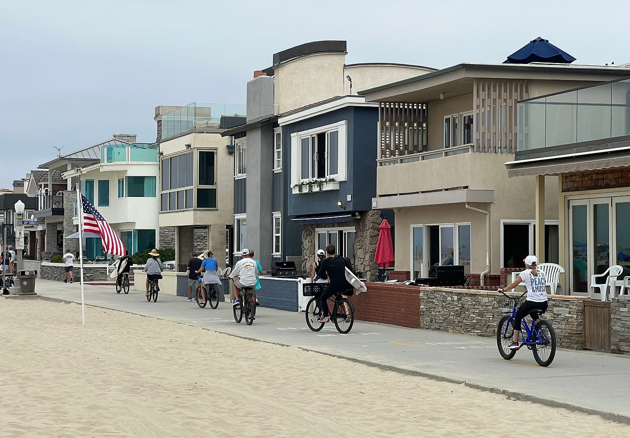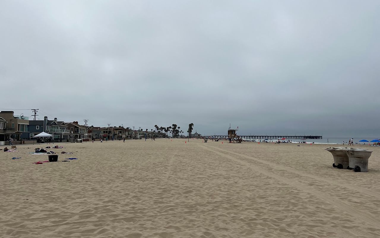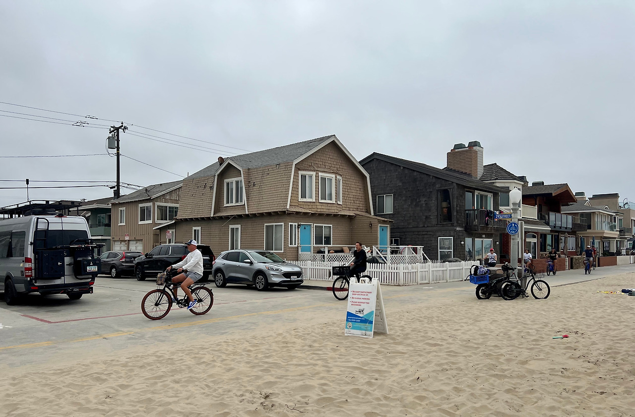 LA 부촌 지역인 뉴포트(Newport) 비치. LA 도심하고는 거리가 좀 있어서 주로 은퇴하거나 나이 든 분들이 많이 산다고 한다. 백사장에 모래 구덩이를 만들고 소꿉놀이 하는 아이들, 서핑하는 사람들, 자전거를 타는 사람들이 한데 어우러져 있다. #2022_0714