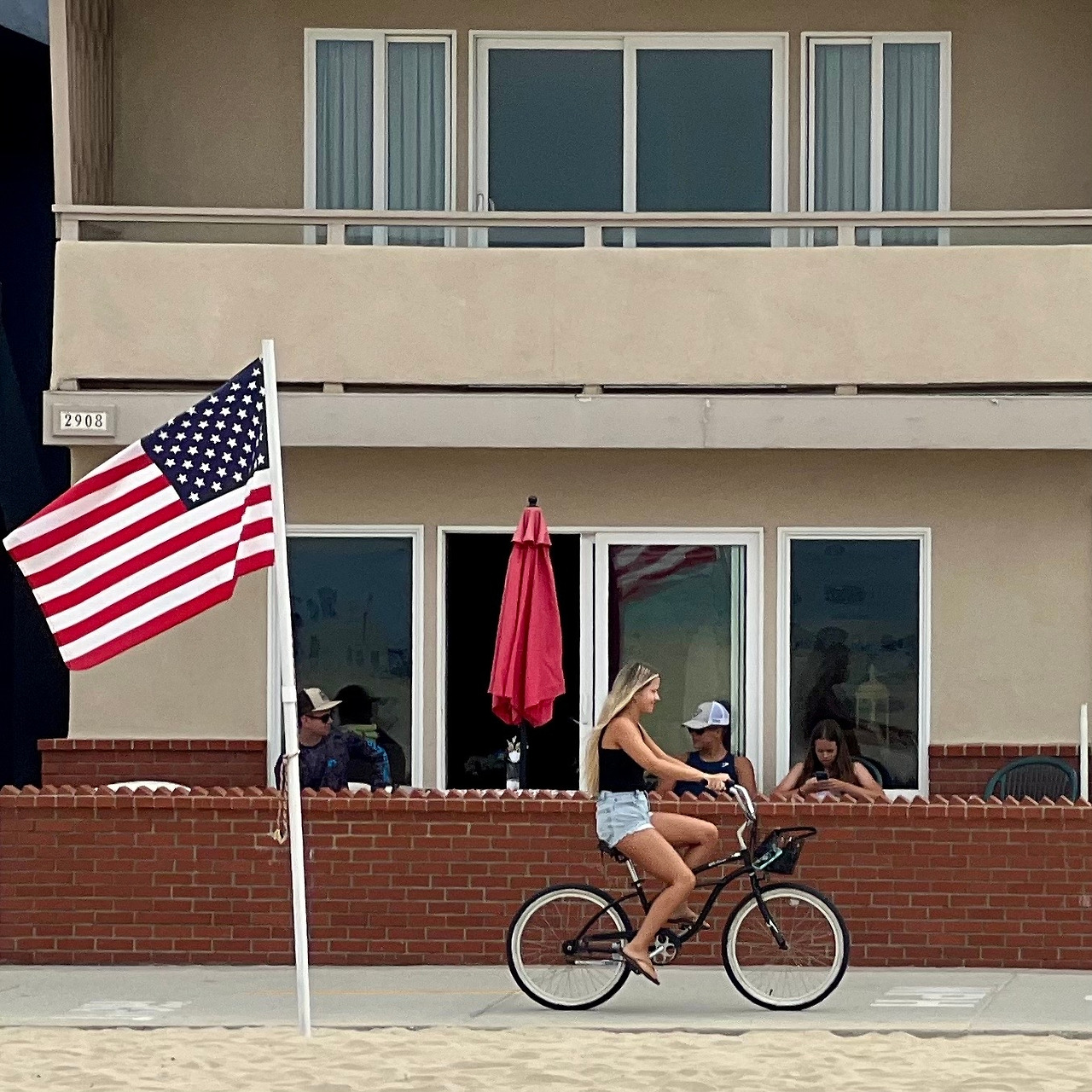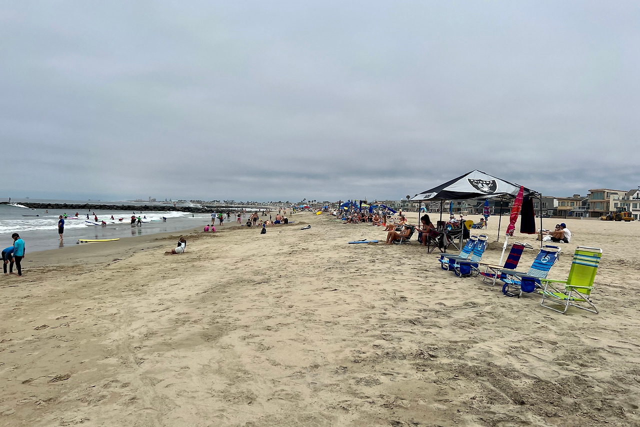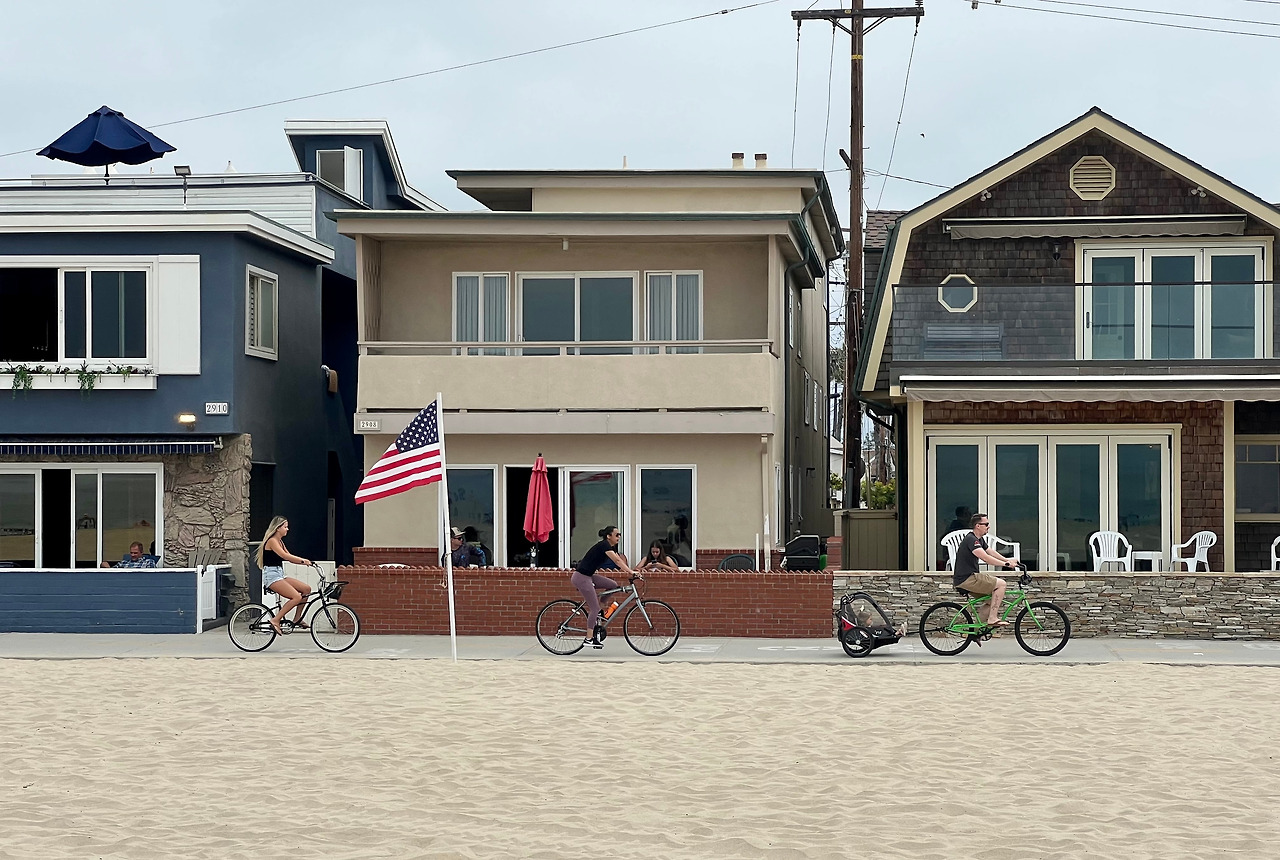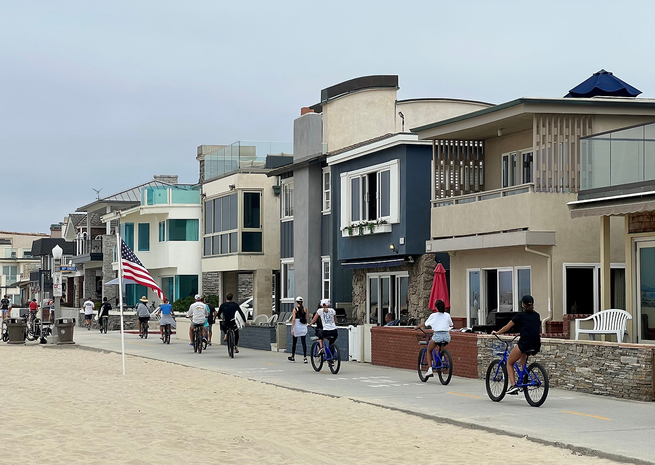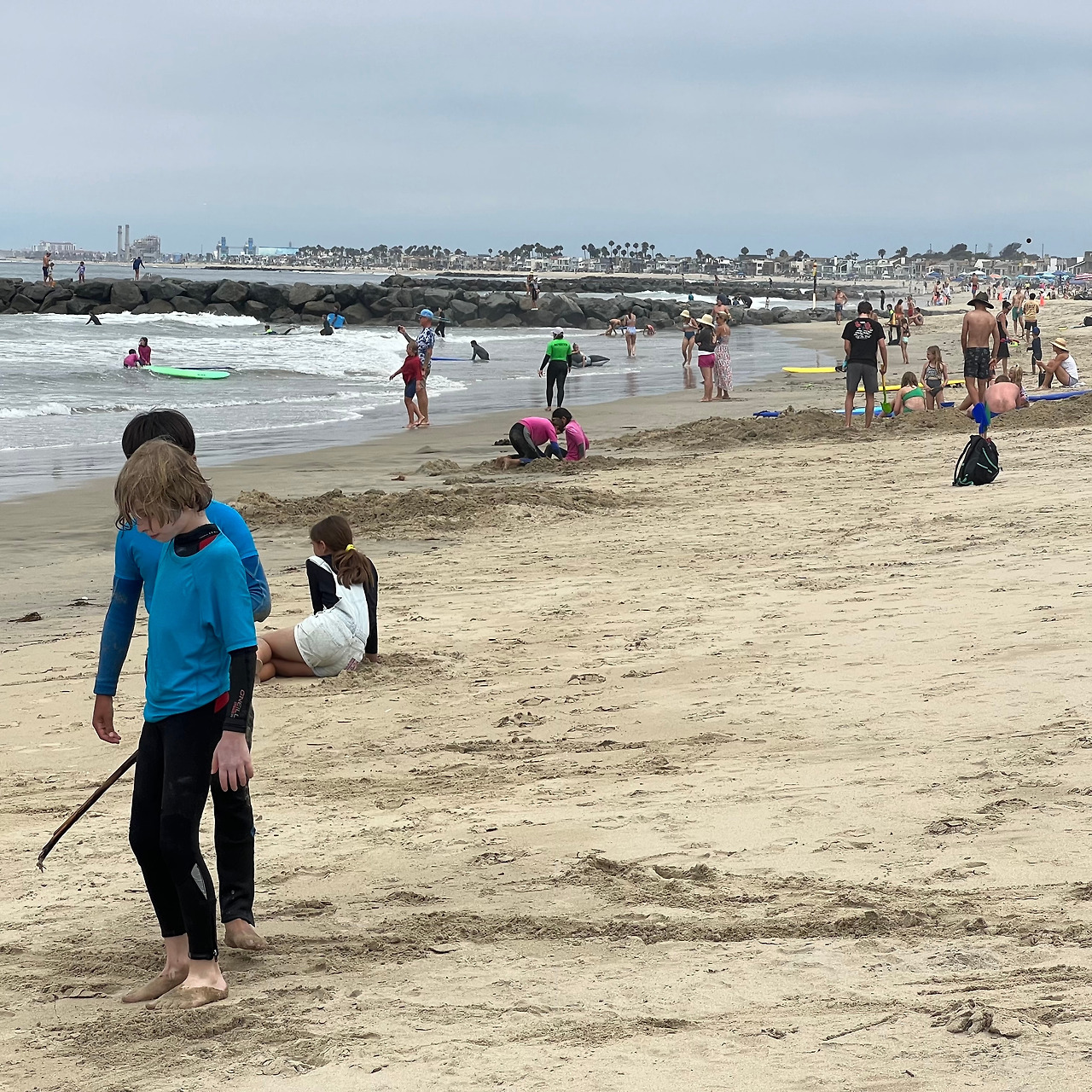 LA 부촌 지역인 뉴포트(Newport) 비치. LA 도심하고는 거리가 좀 있어서 주로 은퇴하거나 나이 든 분들이 많이 산다고 한다. 백사장에 모래 구덩이를 만들고 소꿉놀이 하는 아이들, 서핑하는 사람들, 자전거를 타는 사람들이 한데 어우러져 있다. #2022_0714