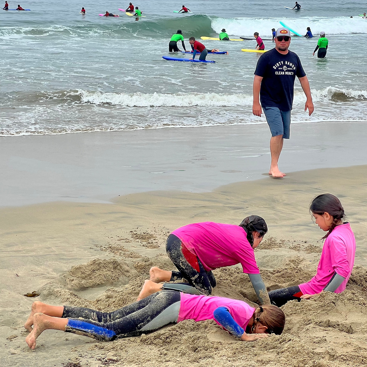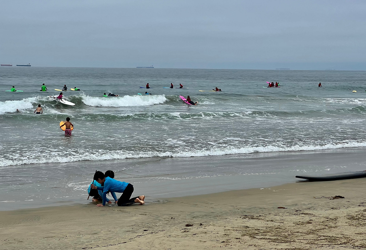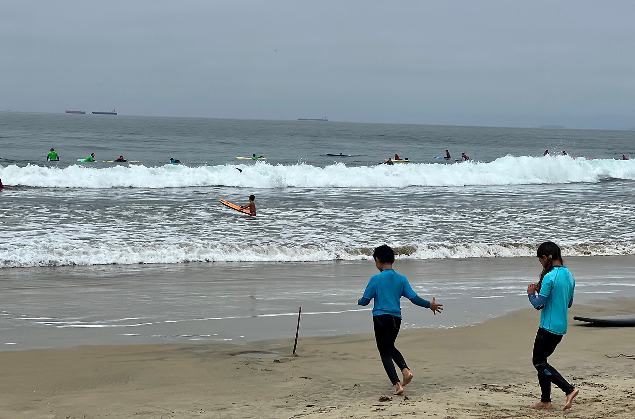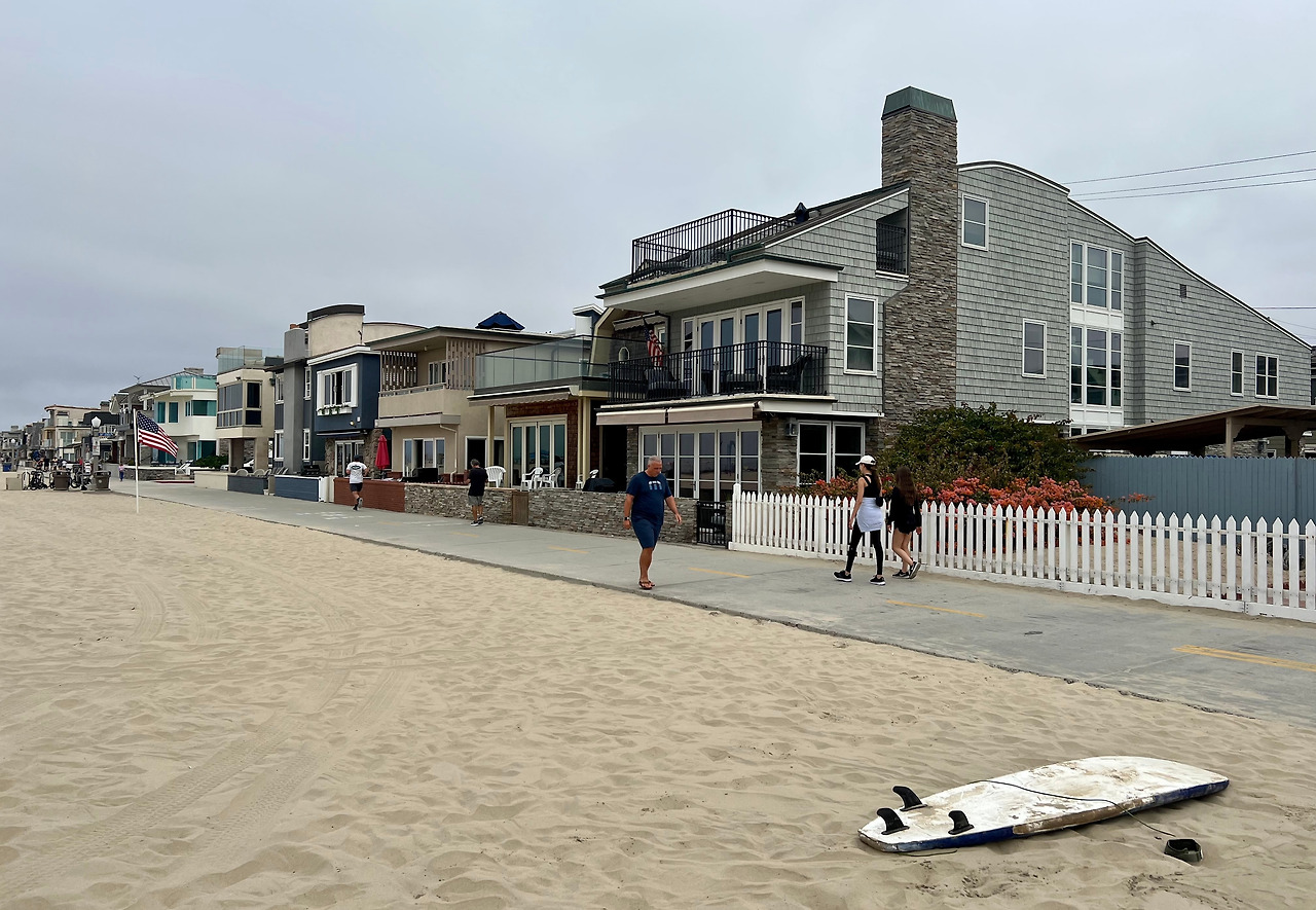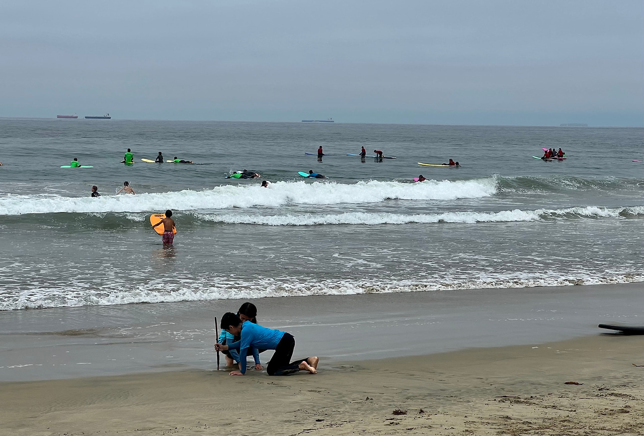 LA 부촌 지역인 뉴포트(Newport) 비치. LA 도심하고는 거리가 좀 있어서 주로 은퇴하거나 나이 든 분들이 많이 산다고 한다. 백사장에 모래 구덩이를 만들고 소꿉놀이 하는 아이들, 서핑하는 사람들, 자전거를 타는 사람들이 한데 어우러져 있다. #2022_0714
