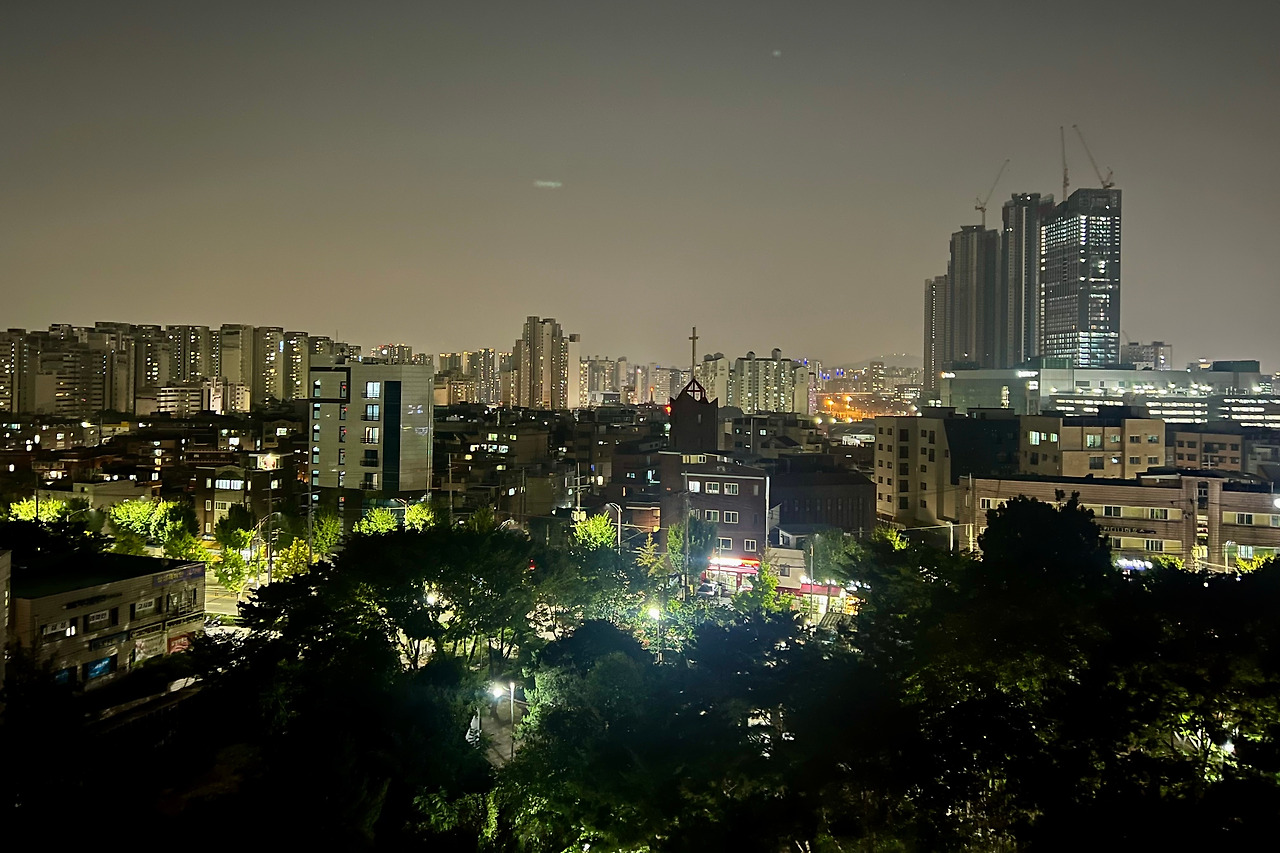 서울시립대 앞 루프탑 호프집 <해피디쉬클럽>에서 본 야경.