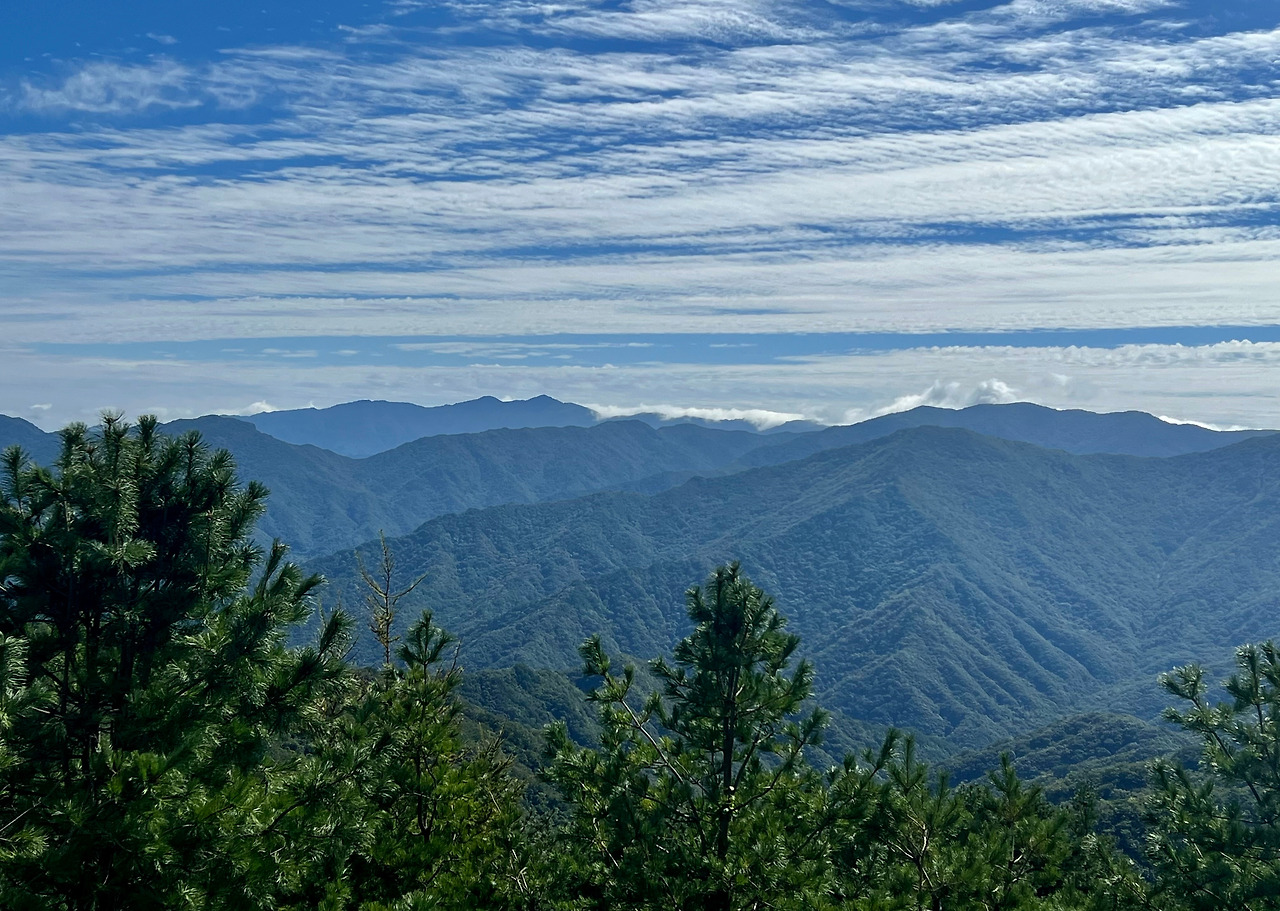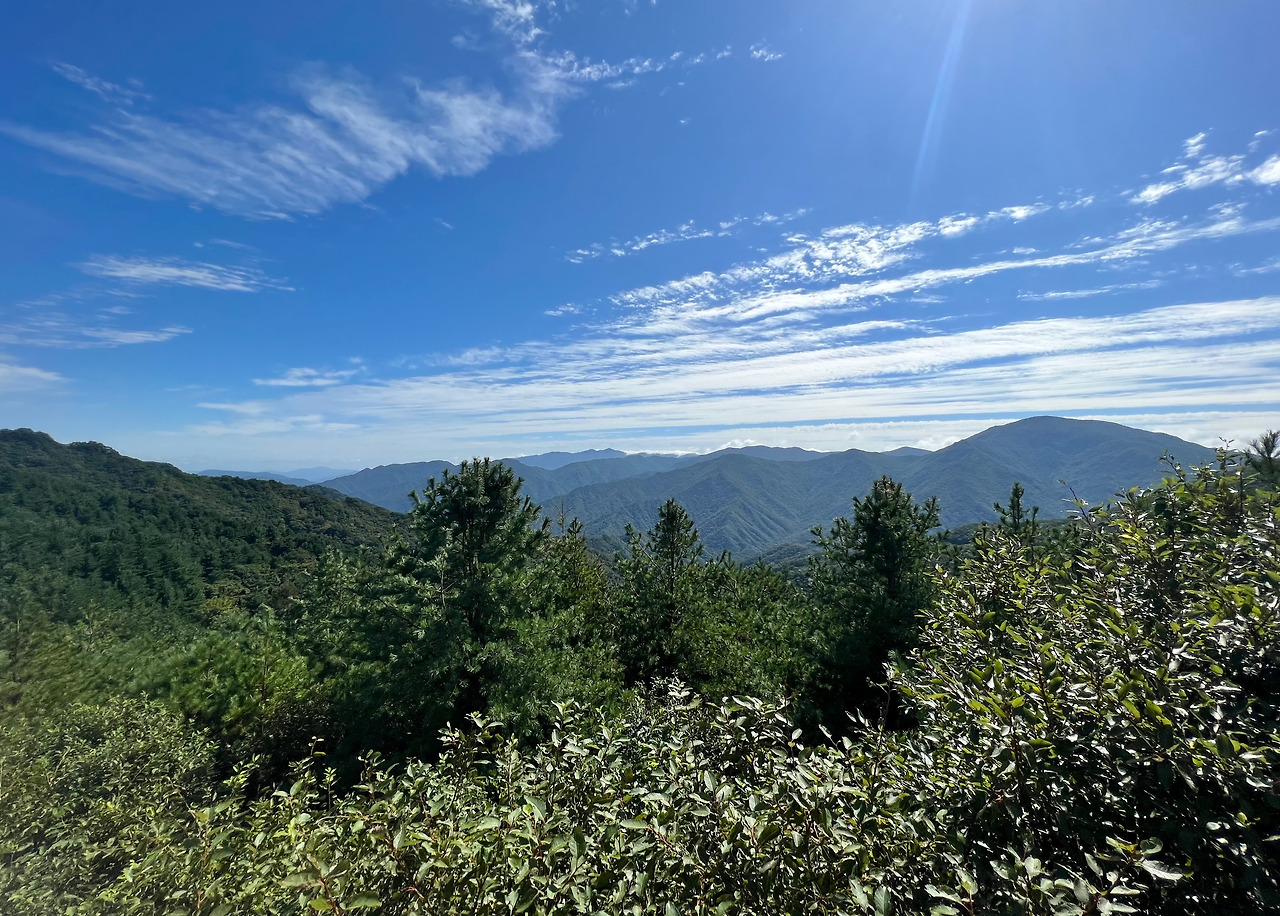 정령치(鄭嶺峙)에서 바라본 풍광. 정령치는 전북 남원시 주천면과 산내면의 경계. 지리산 서북 능선 중간. 북으로 덕유산, 남으로 지리산을 연결하는 백두대간 횡단 고개. 해발고도 1172m로 고지대. 1988년 개통된 지방도 737호선이 통과.